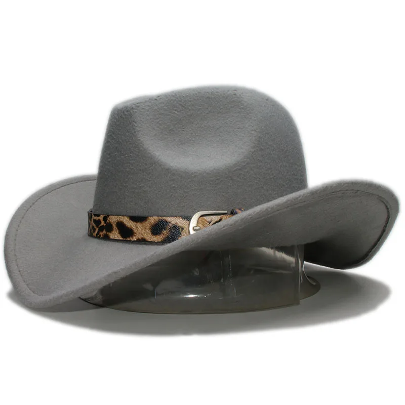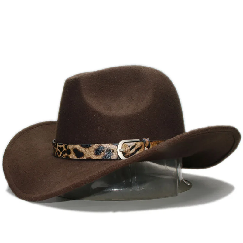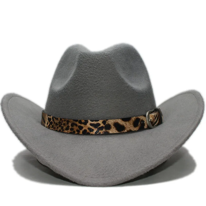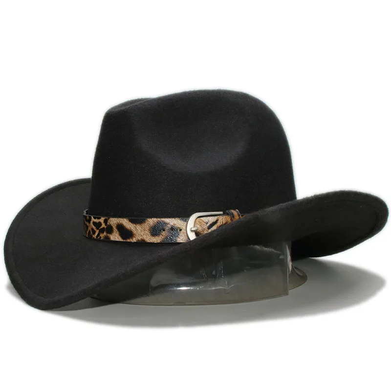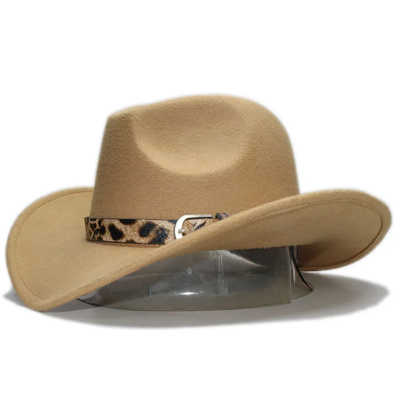Шляпа для родителей и детей, шерстяная, ковбойская, в стиле ретро, с широкими полями, кожаная с леопардовым принтом дюйма, унисекс, ковбойская, ковбойская (54-57-61 см)