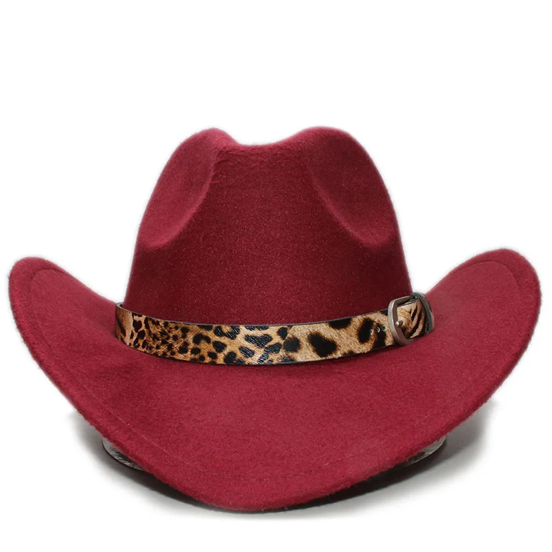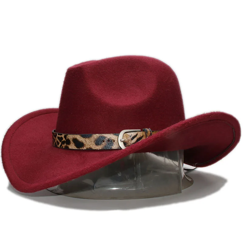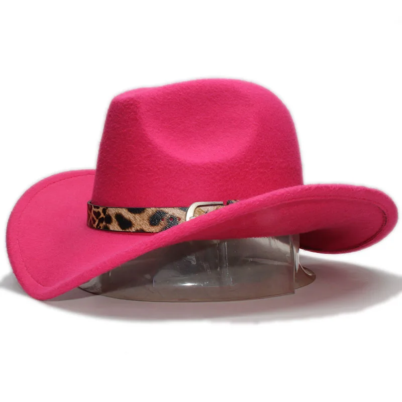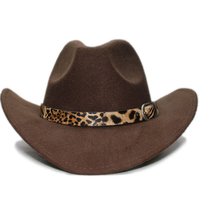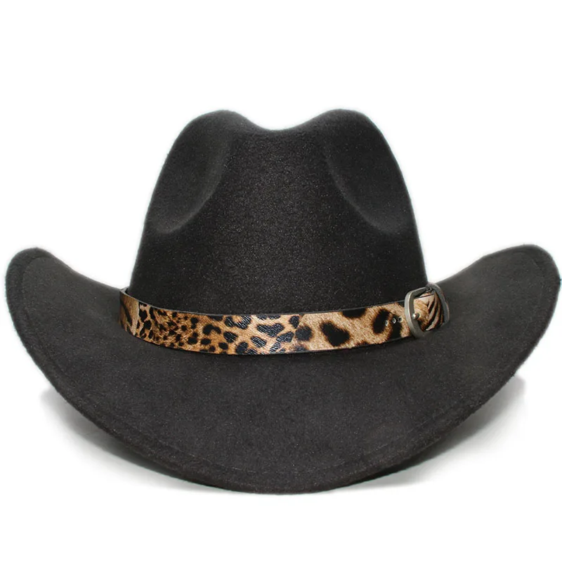 Шляпа для родителей и детей, шерстяная, ковбойская, в стиле ретро, с широкими полями, кожаная с леопардовым принтом дюйма, унисекс, ковбойская, ковбойская (54-57-61 см)