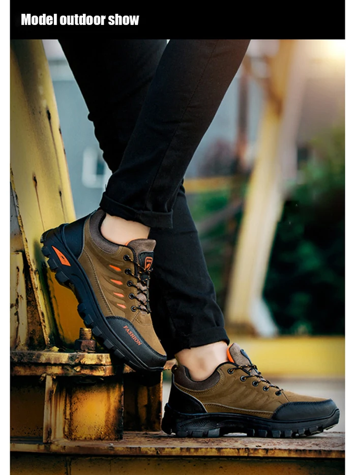 Мужские уличные ботинки, Водонепроницаемые кожаные кроссовки, Нескользящие, повседневная обувь для работы