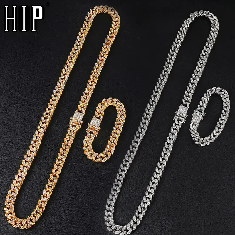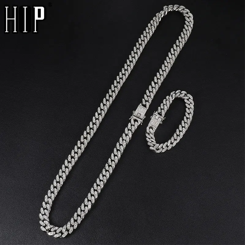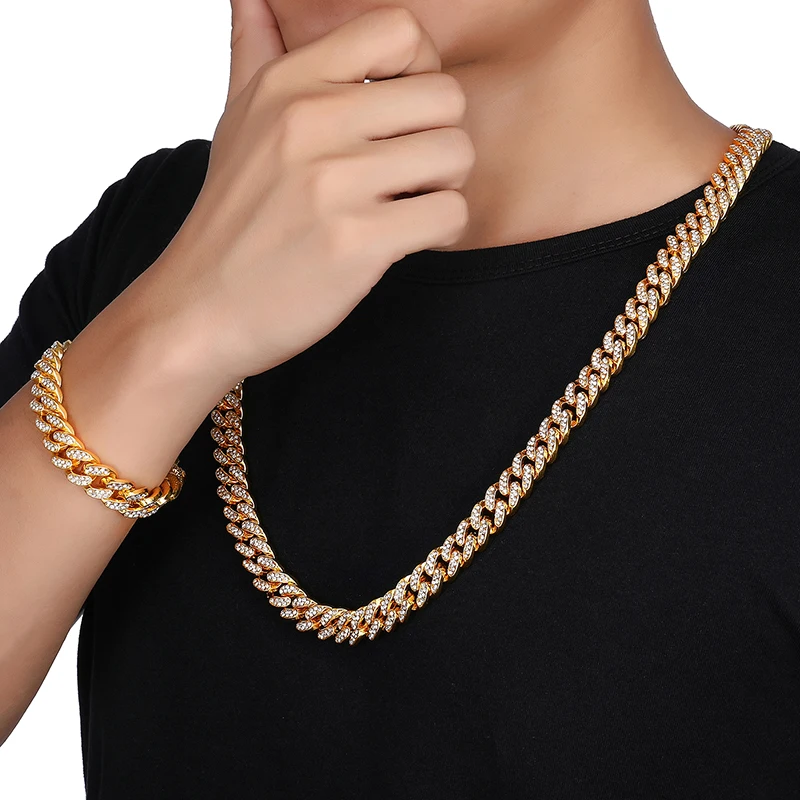1 комплект 13 мм полный льдом ограненные Стразы Майами кубинской камнями Bling, ожерелья для Для мужчин хип-хоп ювелирные изделия