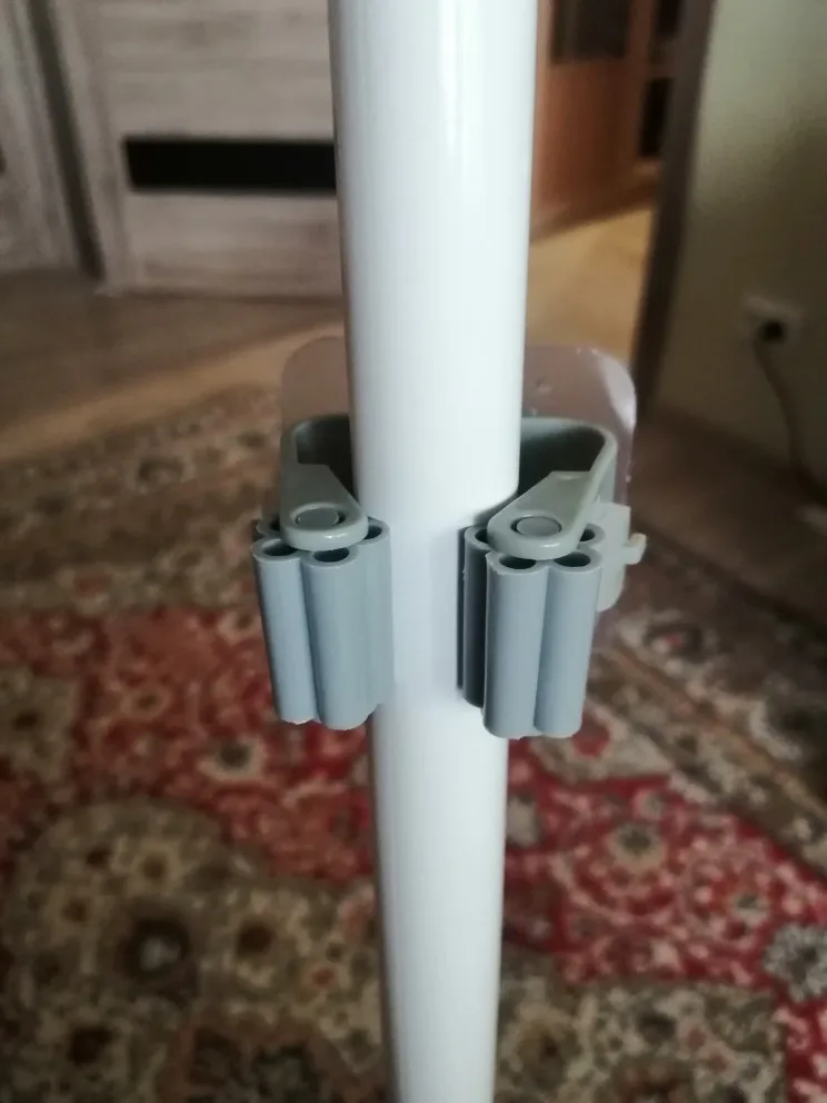 получила держатель,штучка весьма крепкая и лёгкая в использовании оказалась.Швабру держит хорошо
