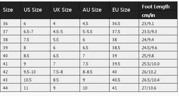 Размер US размер UK размер AU размер EU Размер длина стопы