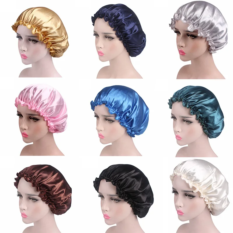 Атласная женская шапочка для ухода за волосами, Регулируемая Шапочка для ночного сна, однотонная атласная ночная шапочка для ухода за волосами для женщин и мужчин, аксессуары для волос