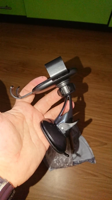 Хороший держатель, единственное огорчение , что я не обратила внимание и заказала держатель с прищепкой, а хотела с липучкой( Но сама виновата, возможно перезакажу. В целом держатель хороший, не люфтит, телефон держит хорошо.