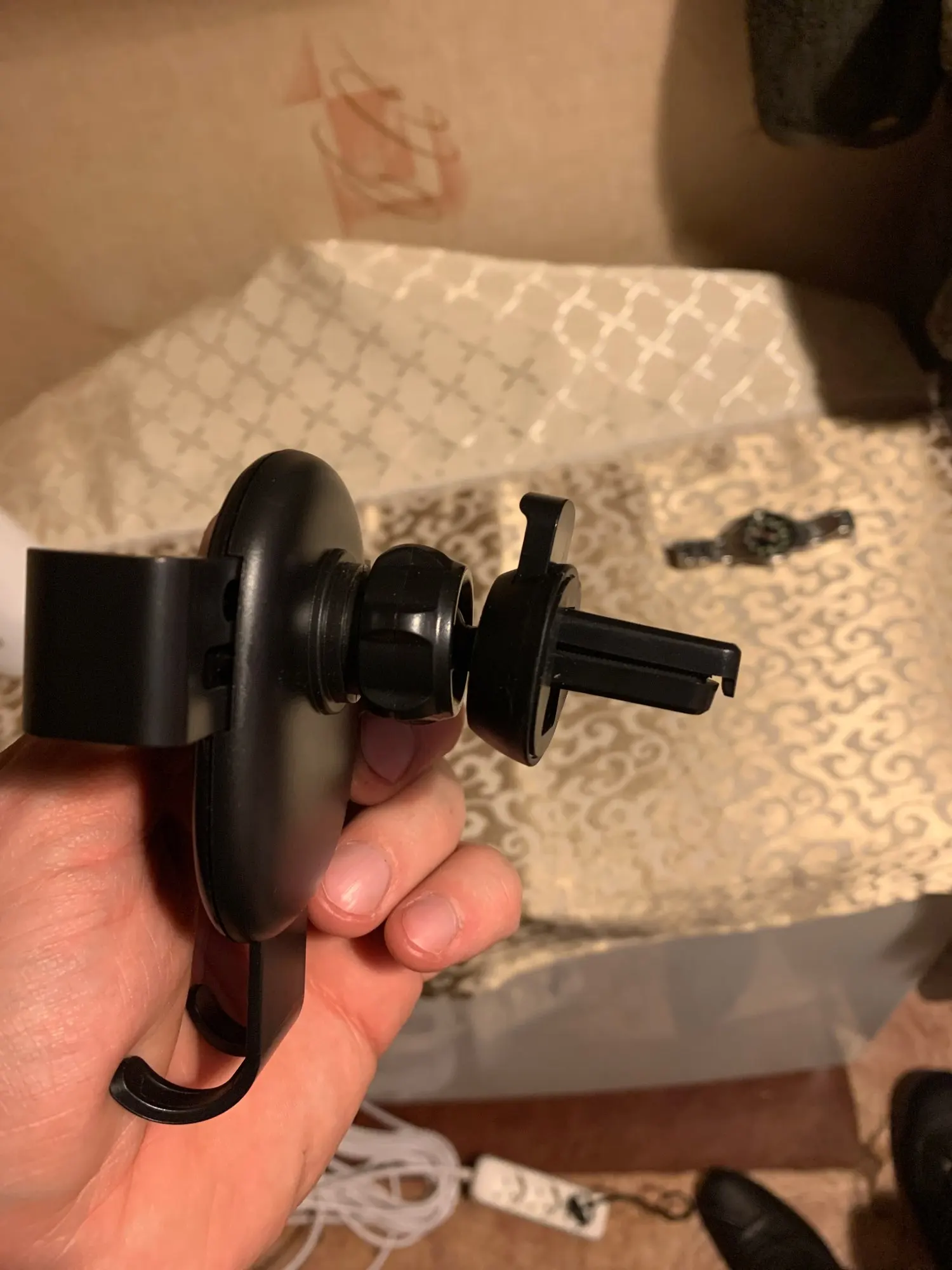 Вроде ничего держатель. Лапки на вид и ощупь хлипкие. Note 8pro в толстом чехле влез в притирку.