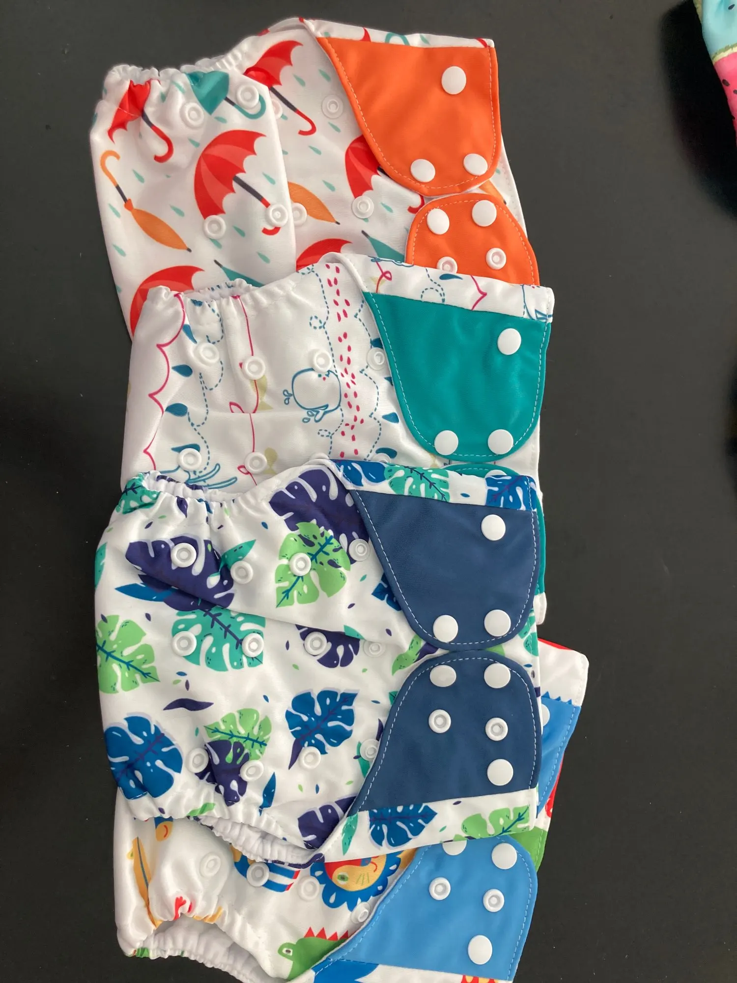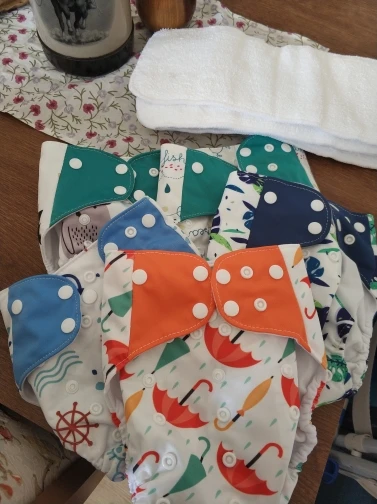 muito lindas, ajuste muito bom, as fraldas parecem um pouco maiores que outras marcas, acabamento excelente, dá pra por mais absorventes por dentro e fica maior o volume pra quem precisar de mais absorventes. secaram muito rápido no sol TB e saiu às manchas. usei junto absorvente de microfibra de 3 camadas, toque seco, não são muito quentes pois o forro é bem fininho. chegou em menos de 18 dias.
