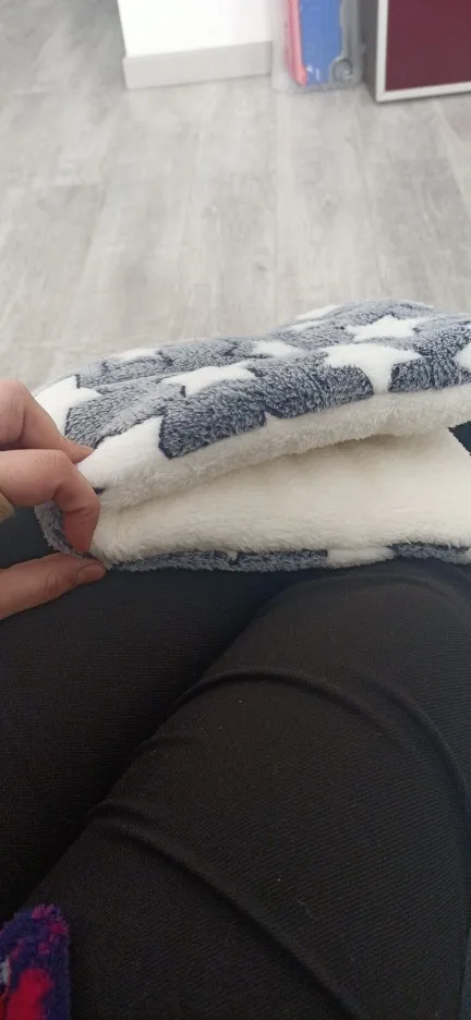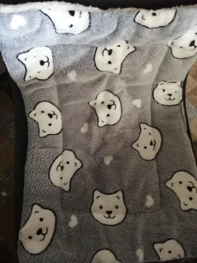 Подстилочка супер, мягкая, достаточно толстая. Всё соответствует описанию. Нашему песику очень нравится. Посылка до Ханты-Мансийска дошла за месяц, отслеживалась, по вопросам продавец отвечал сразу. Советую всем, не пожалеете