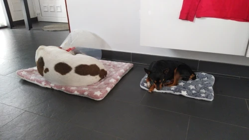 Me encanta igual que en la foto encaja perfectamente con el tamaño de la perra pero alomejor me lo hubiera pedido más grande me pedí 2Xl pero alomejor me hubiera quedado más satisfecha con la 3Xl pero igual me encanta y es súper calentita