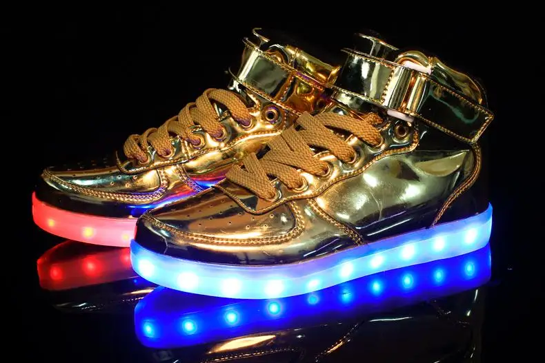 Мужские светящиеся ботинки MR CO, светло-золотистые и Серебристые ботинки на плоской подошве, с высоким берцем и подсветкой, большие размеры, 46