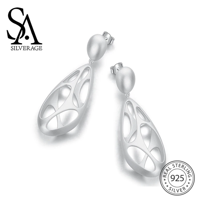Женские серебряные серьги-гвоздики SA SILVERAGE, Необычные Длинные трендовые серьги-гвоздики в виде цветов оливкового цвета