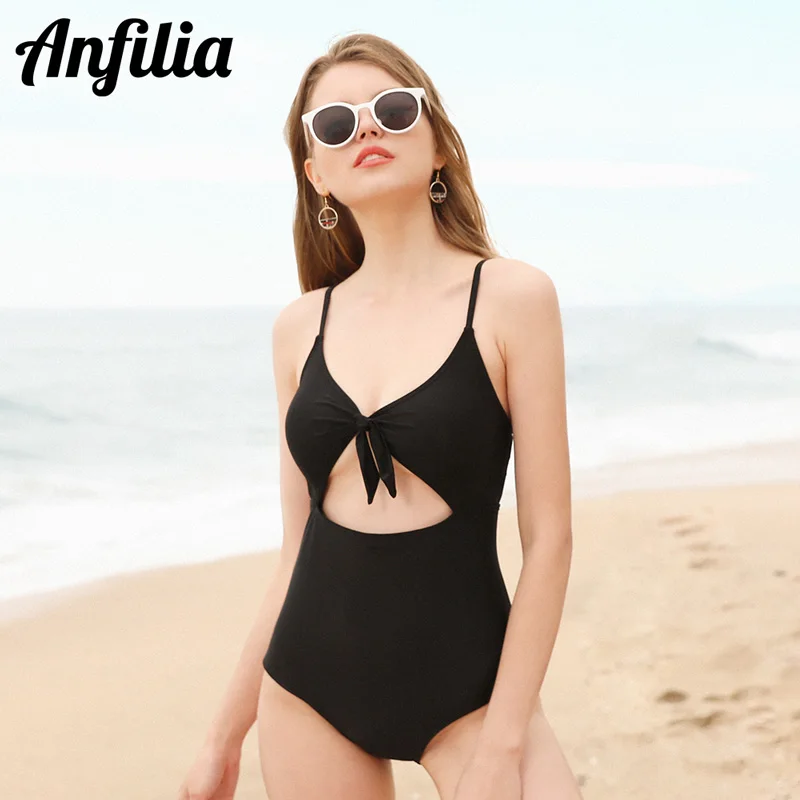 Anfilia, женский слитный монокини, купальник, открытая спина, купальный костюм, бантик, монокини, слитные костюмы