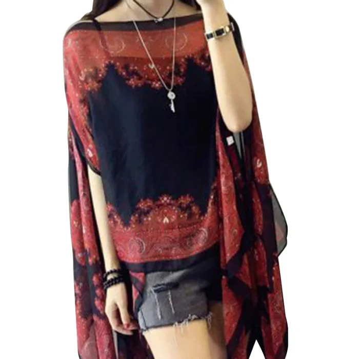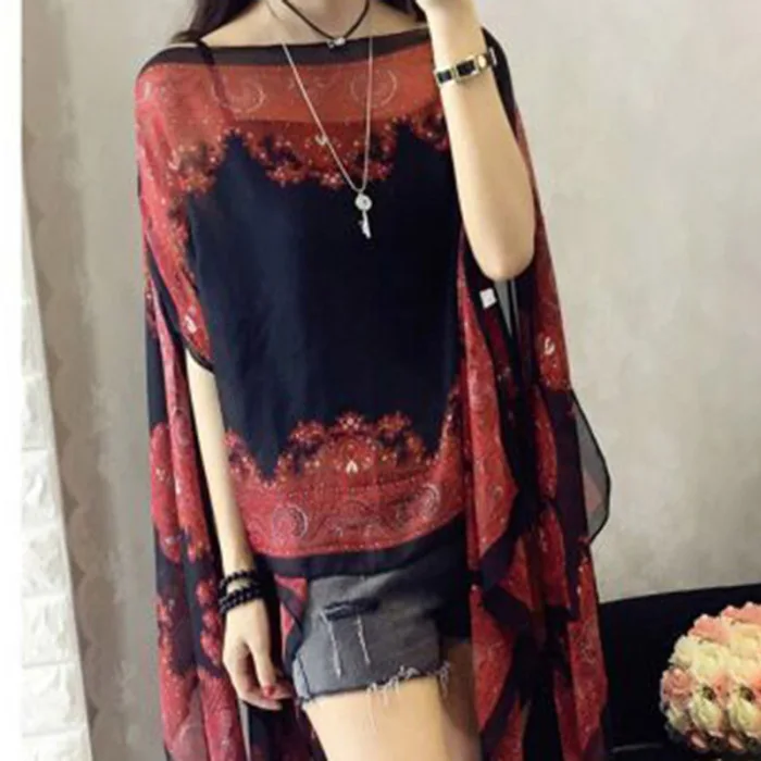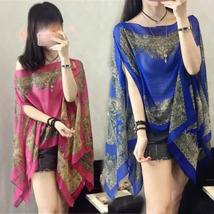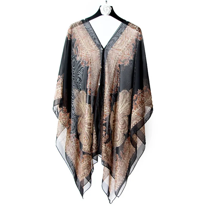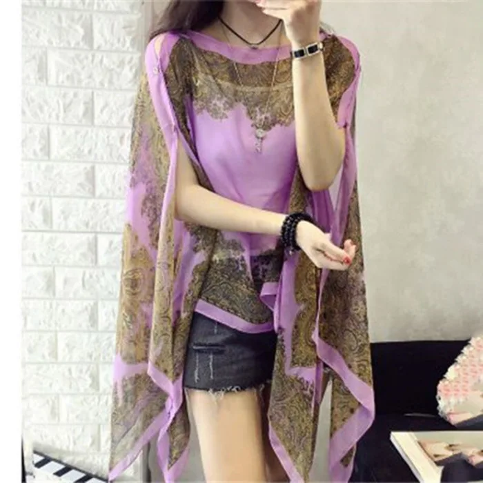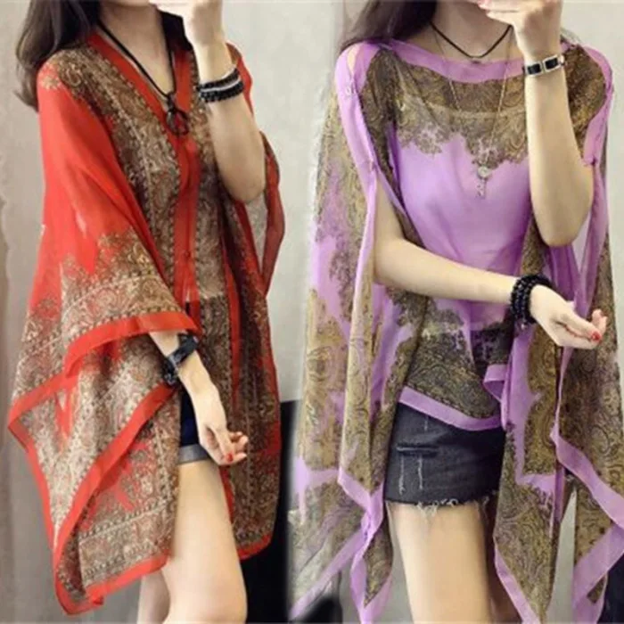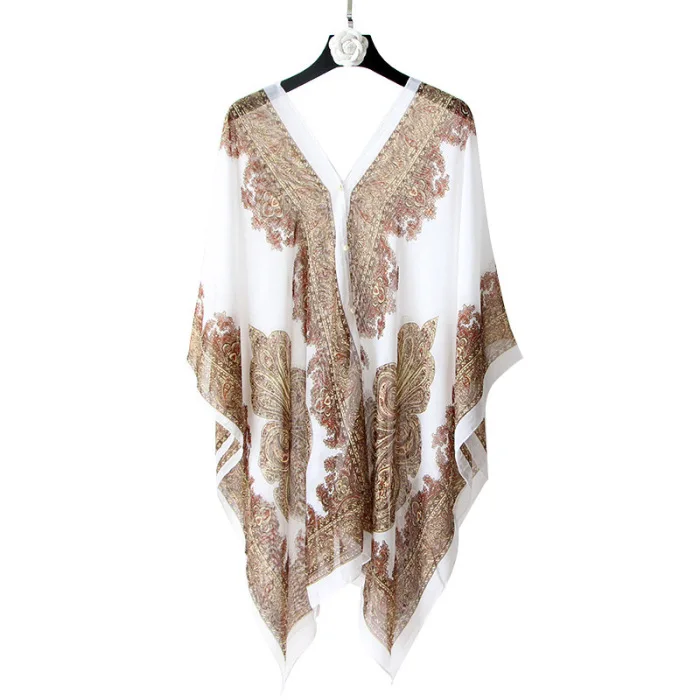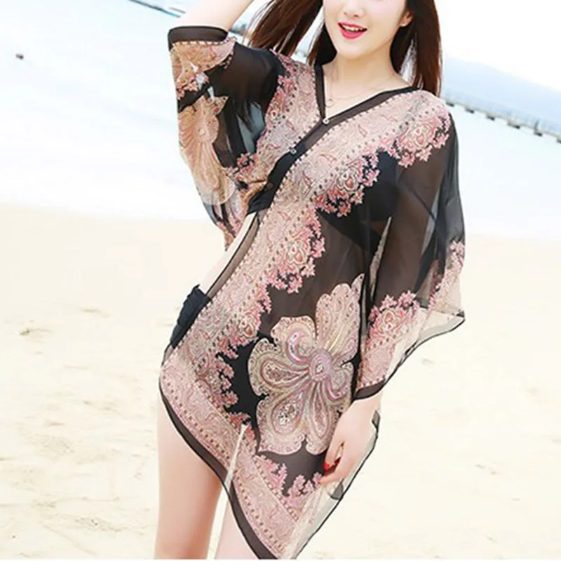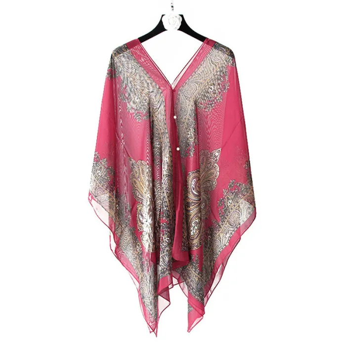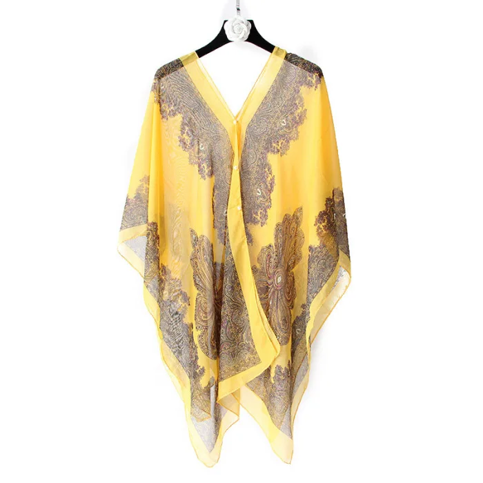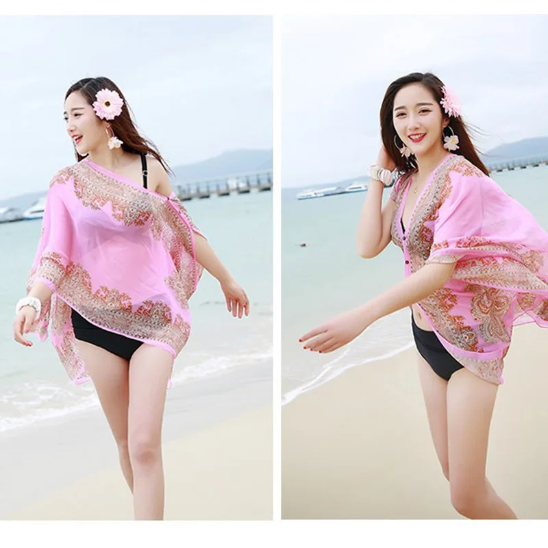 Модные женские шифоновые пляжные блузки Солнцезащитная шаль свободн...