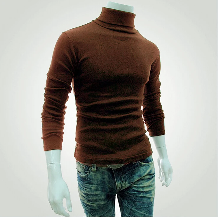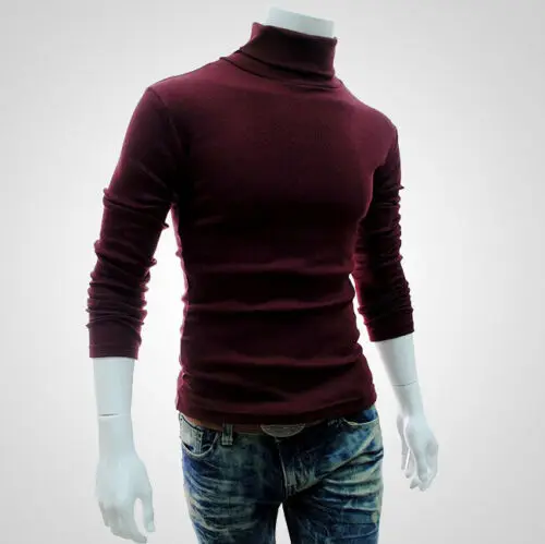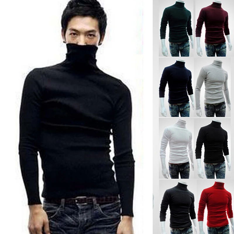 Мужской пуловер с высоким воротом, повседневный облегающий джемпер ...