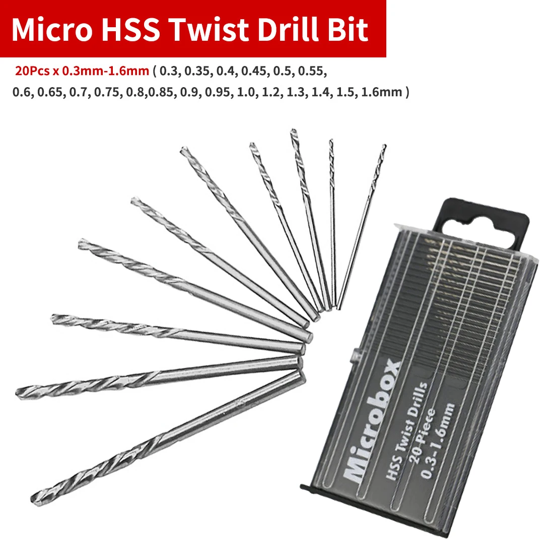 0,3 мм-1,6 мм Micro Сверла по металлу 20 шт. HSS Мини спиральное сверло Набор с Чехол ремонт инструмента для деревообработкиремонт домаПластикцепь