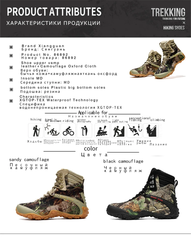 Походные ботинки XIANG GUAN для мужчин и женщин, водонепроницаемая бионическая камуфляжная альпинистская обувь, тактические ботинки для занятий спортом на открытом воздухе, 86892