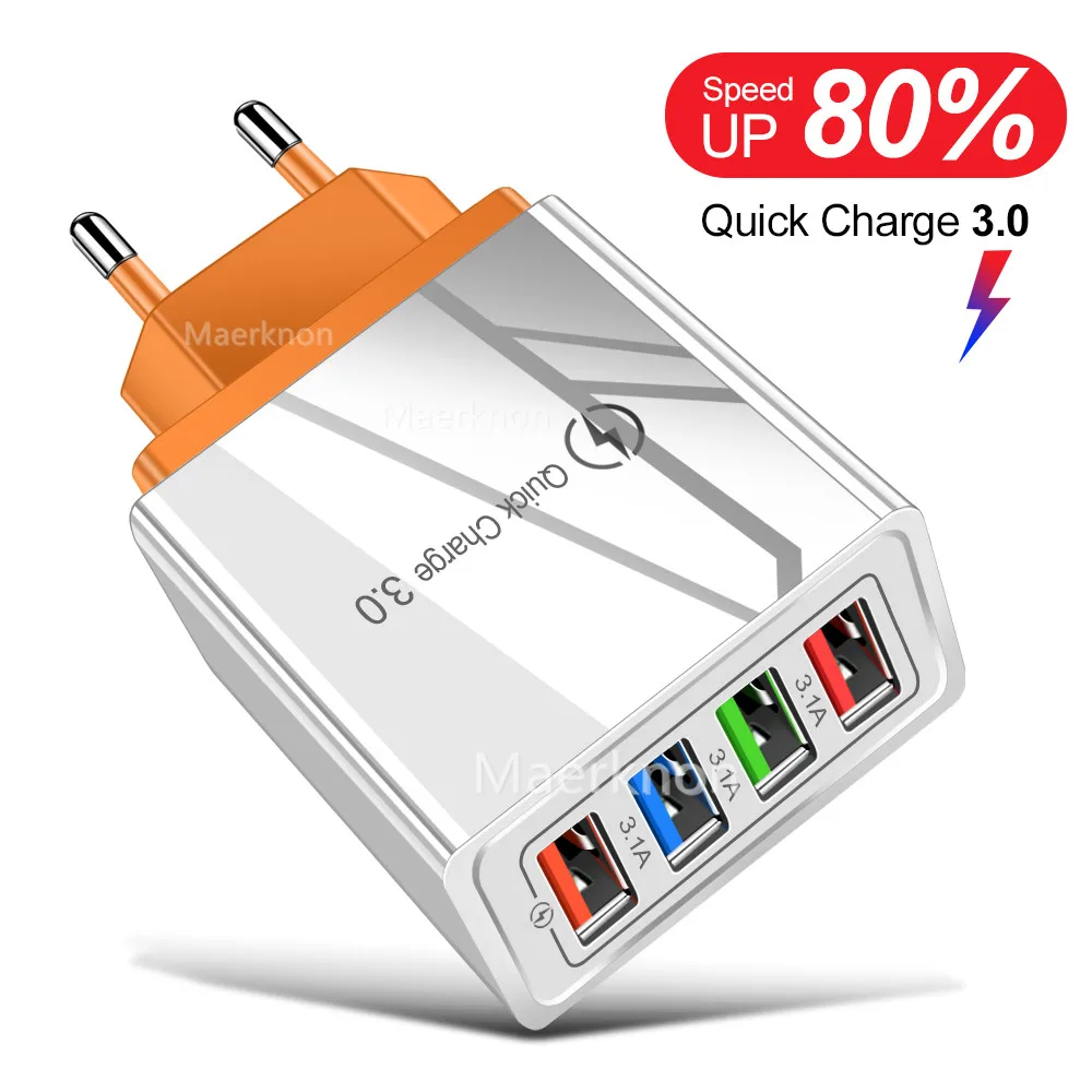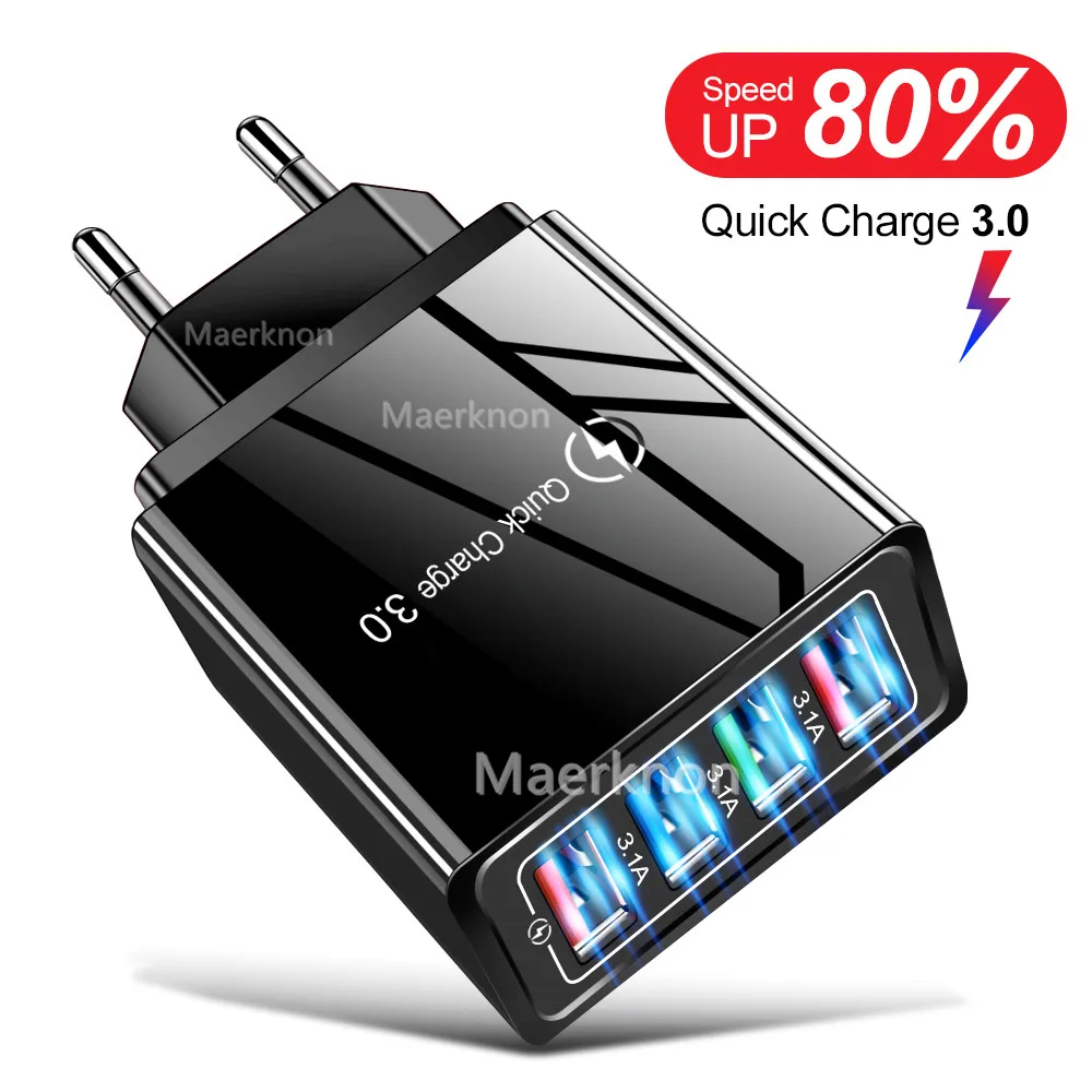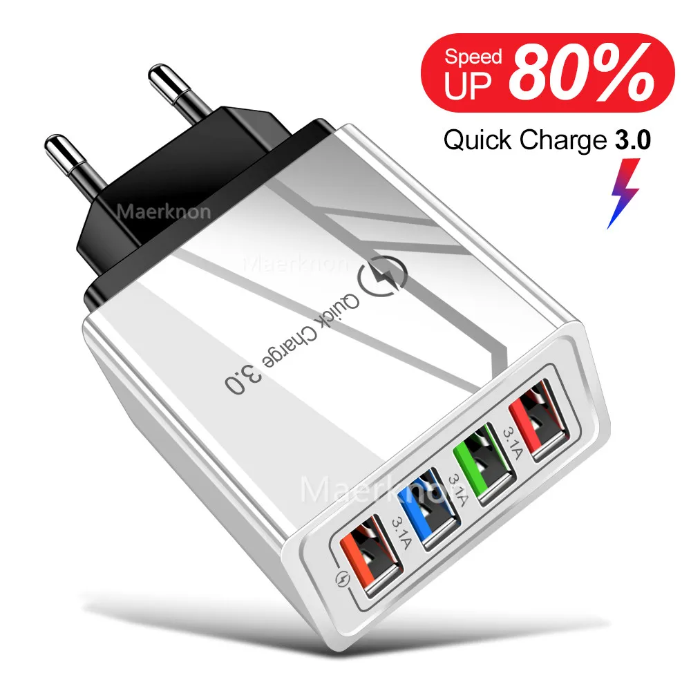 Быстрая зарядка 3,0 4,0 USB зарядное устройство 3,0 А быстрая настенная Стандартная зарядка для iPhone 11 Samsung S9 S8 4 порта адаптер QC зарядное устройство