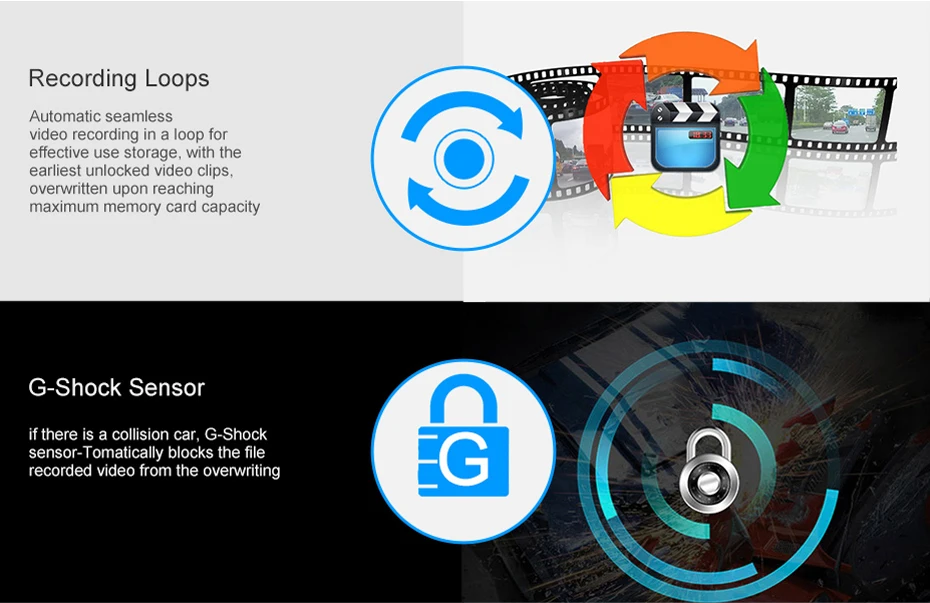 Фронтальная камера записывает видео FHD 1080P, широкий динамический диапазон позволяет камере работать оптимально в любой ситуации освещения, регулируя экспозицию, чтобы создавать сбалансированные изображения и кадры. Фронтальная и задняя камера 2 канала одновременно записываются, они могут работать в фоновом режиме.