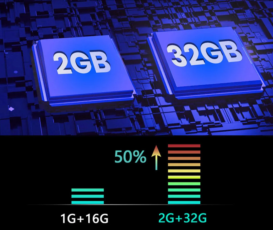 Встроенная ОЗУ 2 Гб, внутренняя память 32 ГБ, вы можете установить больше программного обеспечения, видеорегистратор будет работать более гладко (система займет память деталей).