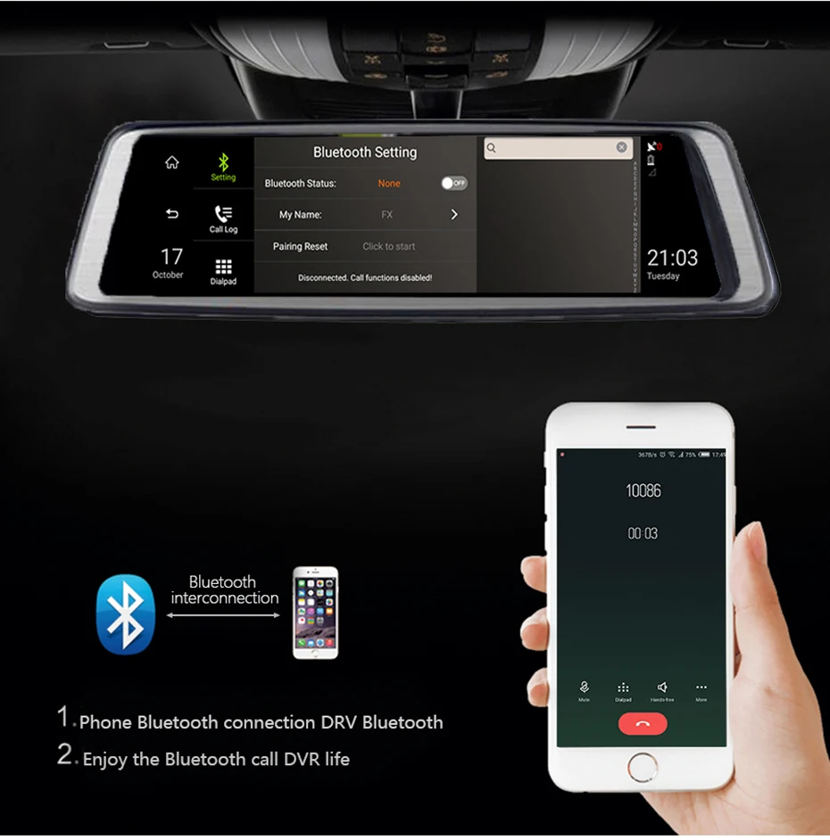 Благодаря bluetooth hands-free, После сопряжения bluetooth между видеорегистратором и смартфоном, вы можете совершать и принимать звонки непосредственно с самого видеорегистратора со встроенным микрофоном и динамиком.