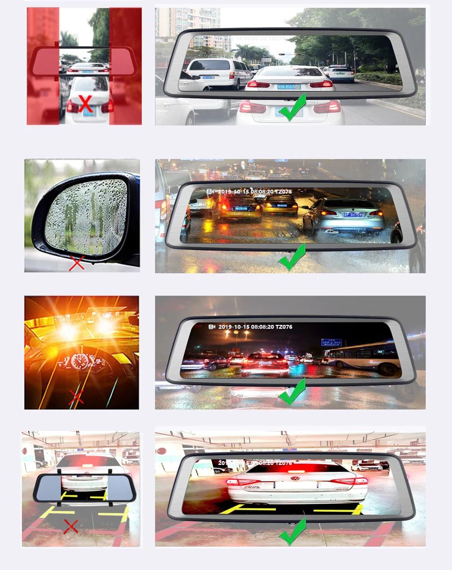 Традиционные зеркала заднего вида просто обеспечивают ограниченное поле заднего вида, большую часть времени, нам нужно повернуть голову назад, чтобы увидеть больше, когда мы паркуем. Видеорегистратор Streaming media позволяет избежать не только препятствий для подголовников или задних столбов, но и дает примерно в 3 раза больше стандартного зеркала заднего вида. Более того, видимость потрясающая даже в ночное время и в дождливые дни.