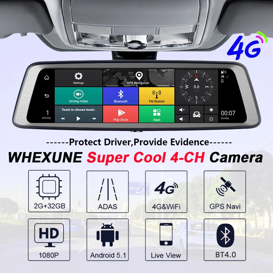 Загрузите ваш любимый GPS во внутреннюю память, с дополнительной GPS антенной, этот Видеорегистратор обеспечивает лучший опыт независимо от места назначения. Кроме того, это сетевая функция 3G/4G, помогает dvr быстрее и плавно получать онлайн gps-навигацию.