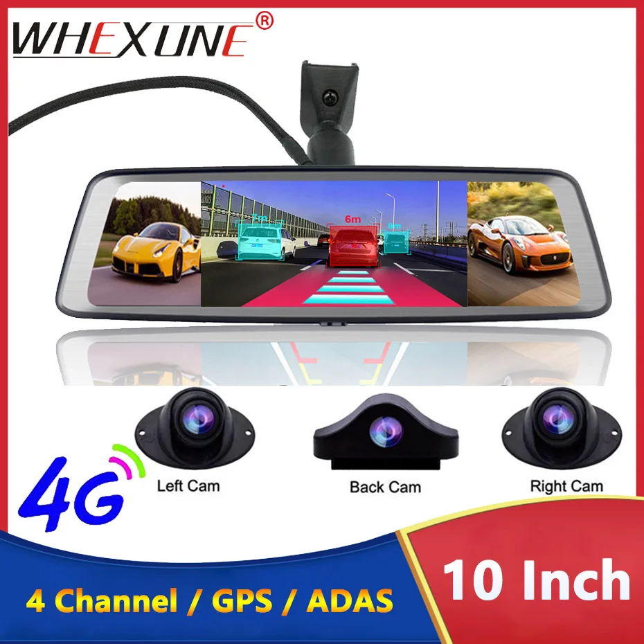 Автомобильный видеорегистратор, 10 дюймов, Android, 4G, 4 объектива, GPS-навигация, ADAS, Wi-Fi, зеркало заднего вида, видеорегистратор, автомобильные камеры заднего вида