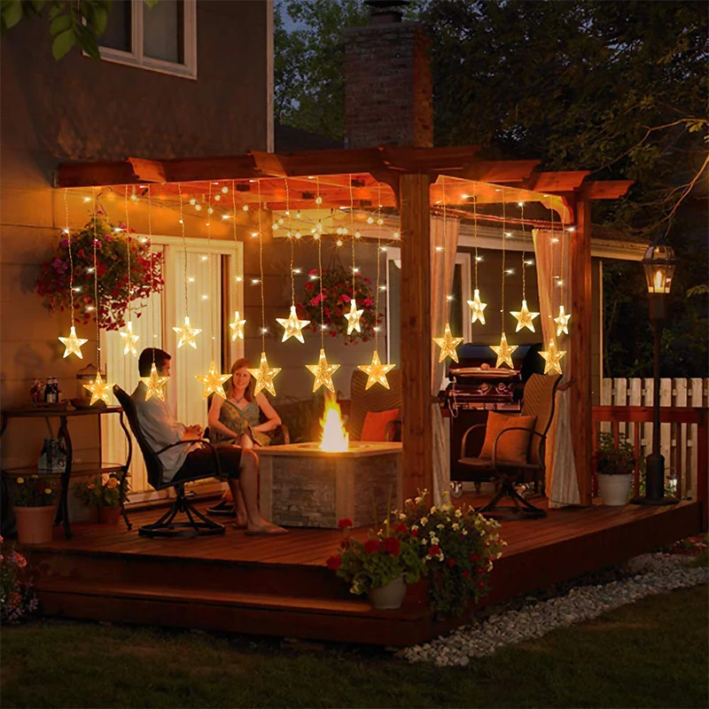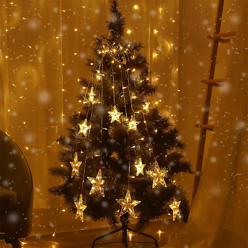 Рождественская светодиодная гирлянда со звездами, СВЕТОДИОДНАЯ Гирлянда-занавеска, освещение для дома, вечеринки, сада, свадьбы, праздника