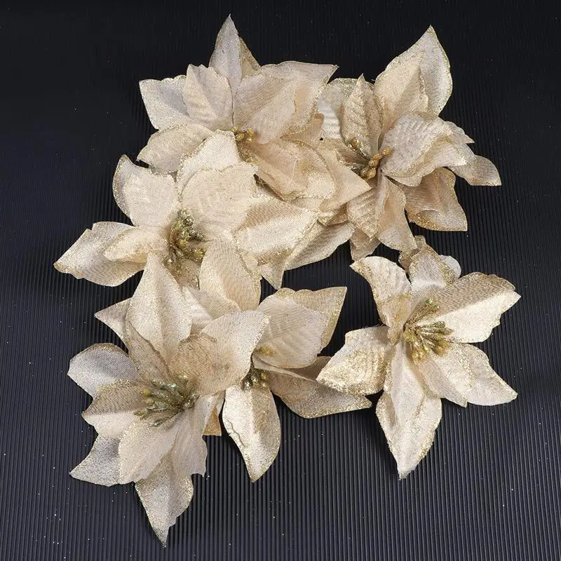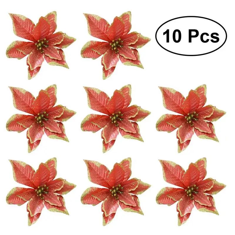 10 шт. 13 см, блестящие Искусственные Свадебные Рождественские цветы, украшение для елки, цветы, венки, орнамент, рождественские принадлежности, A35