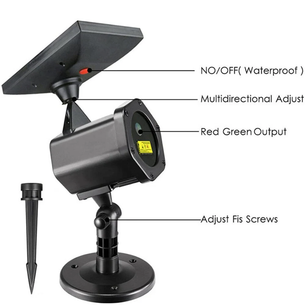 Лазерный прожектор с питанием от солнечной батареи, красный и зеленый прожектор для диджея, дискотеки, сценсветильник, уличный садовый ландшафтный светильник