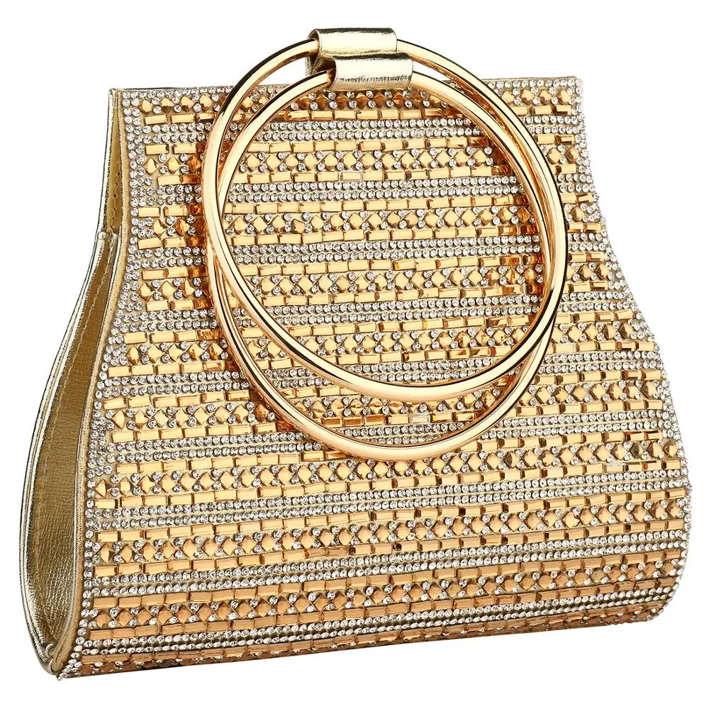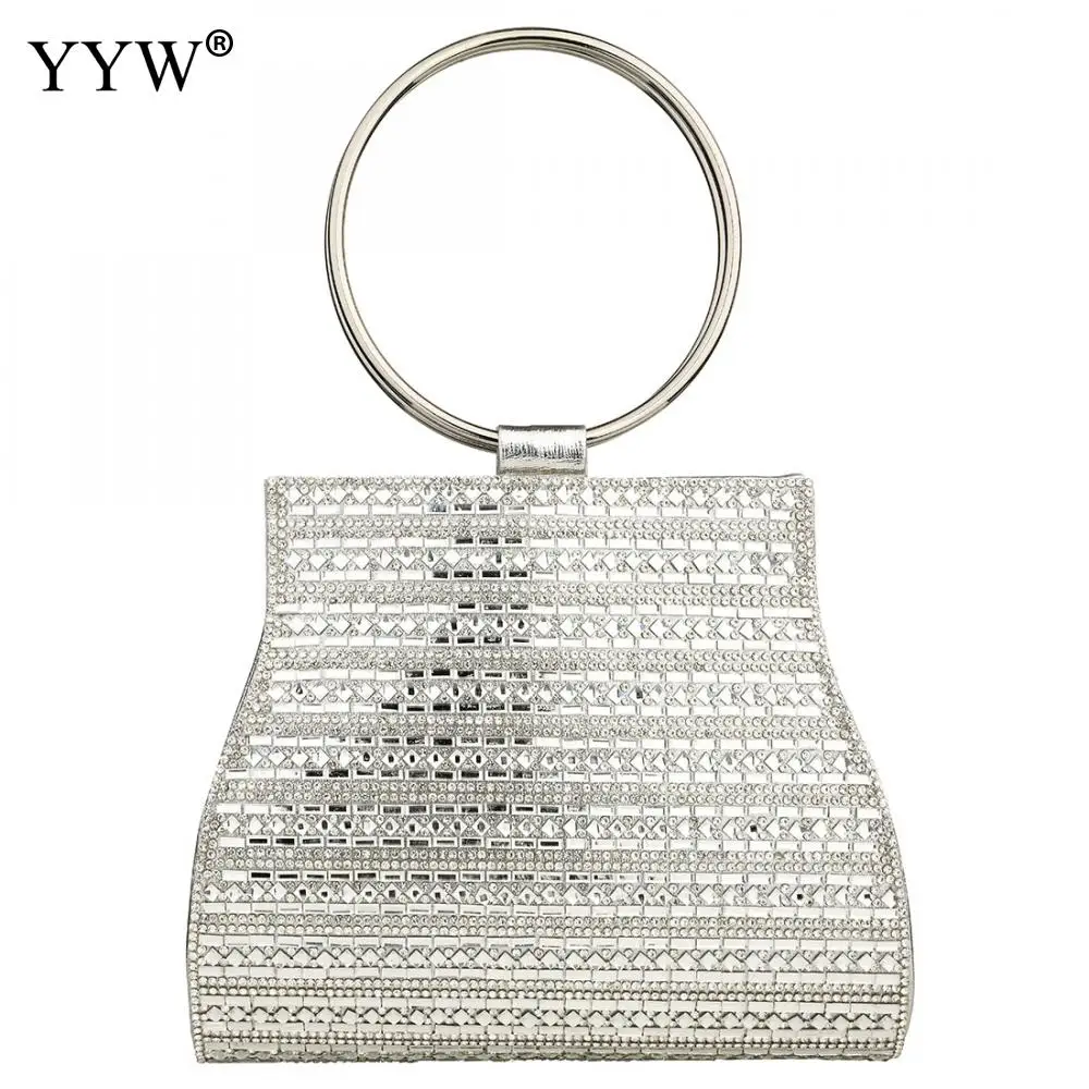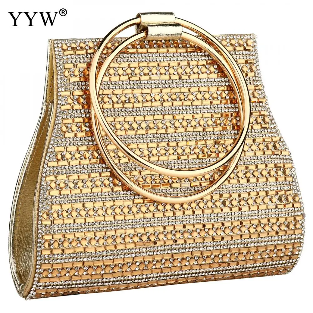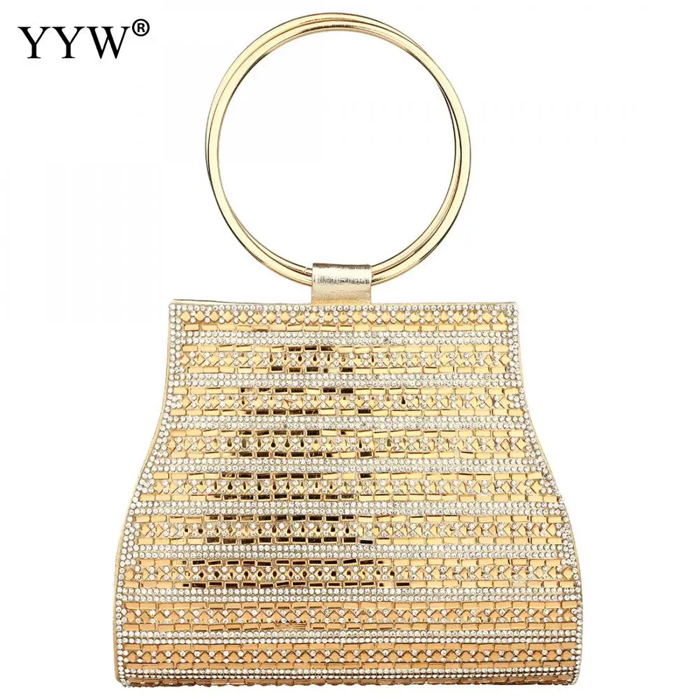 Женская вечерняя мини-сумка YYW, золотистая Сумка-клатч с круглой ручкой, свадебная Сумка-тоут, 2019