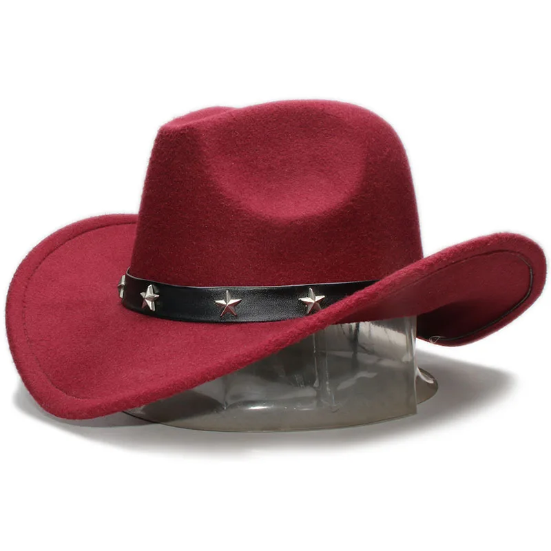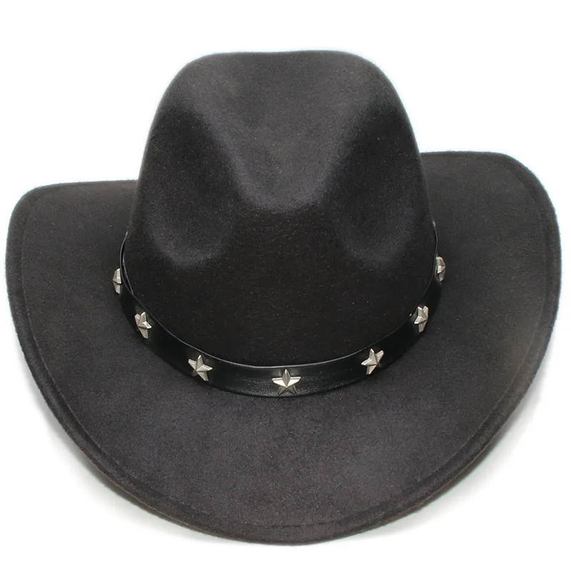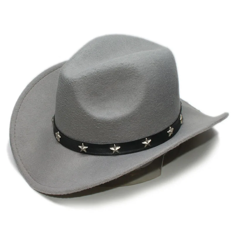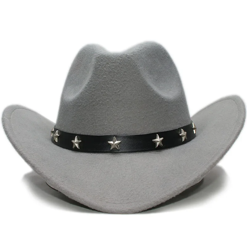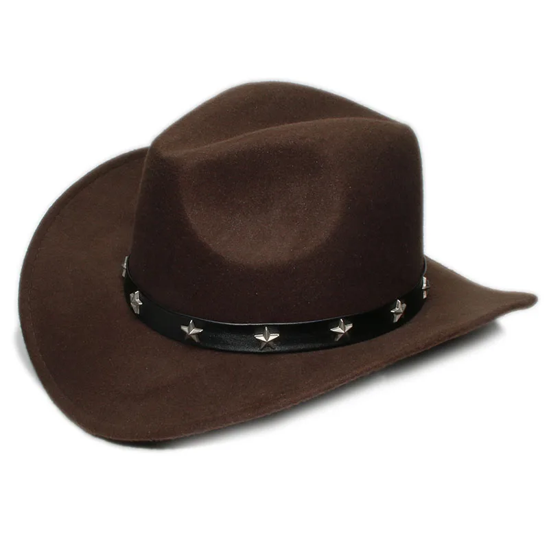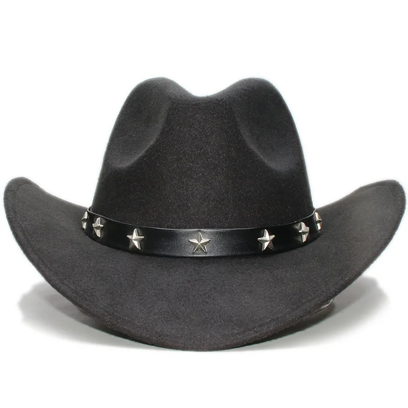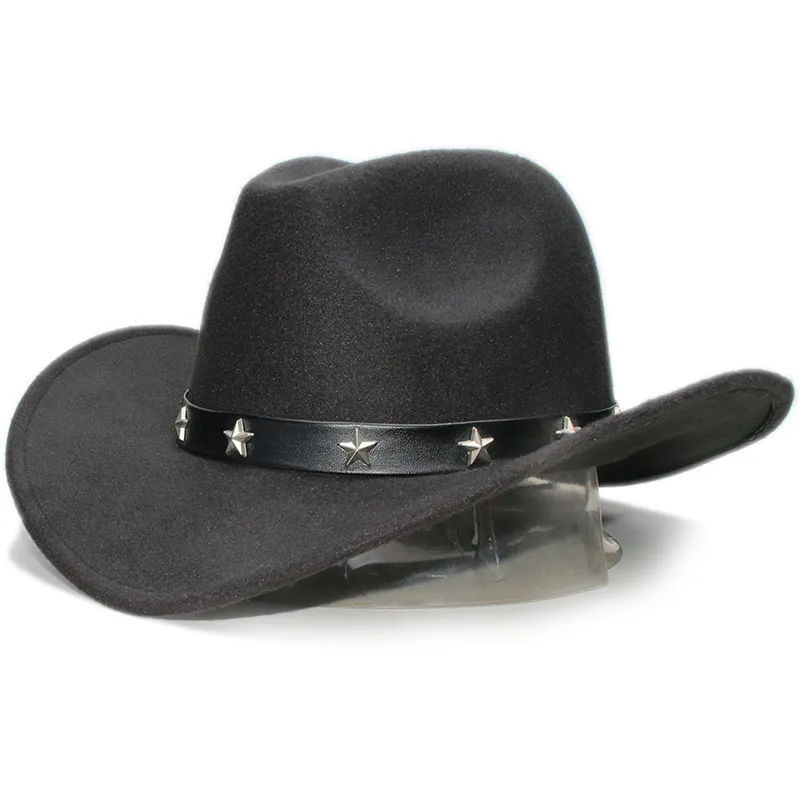 Ретро Кожаный ремешок со звездами для родителей и детей унисекс шерстяная с широкими полями Ковбойская шапка для взрослых и детей Кепка-котелок из коровьей кожи (61 см57 см54 см