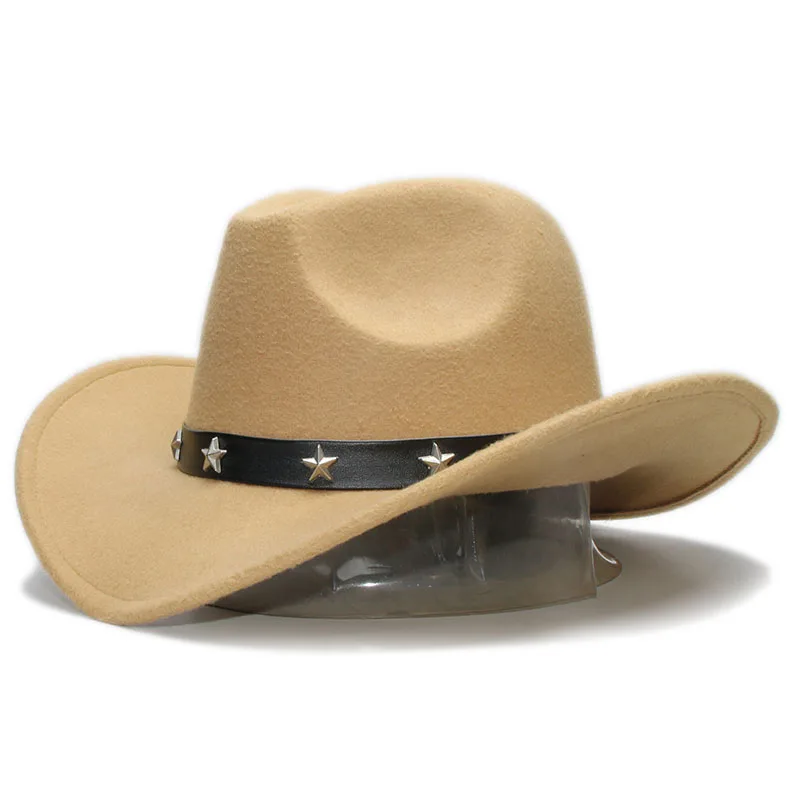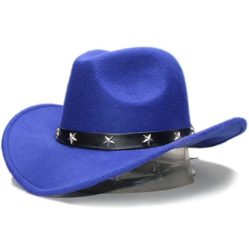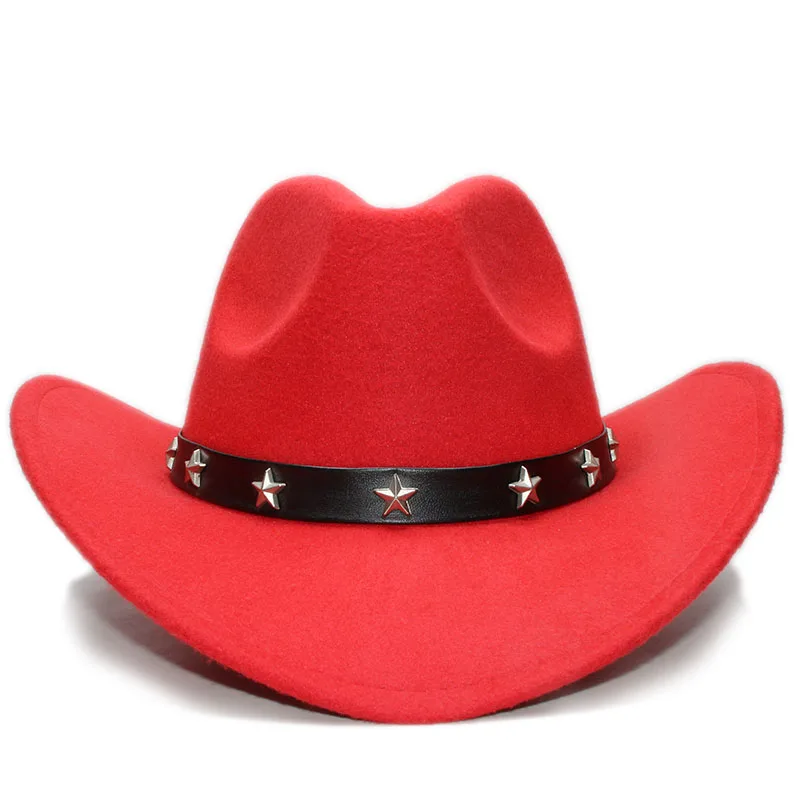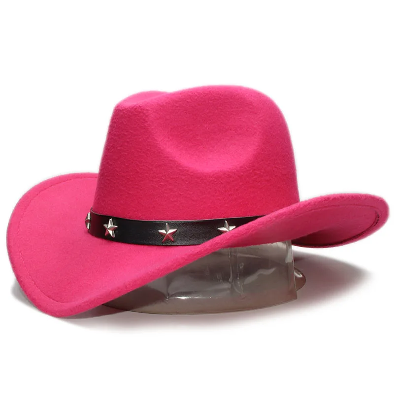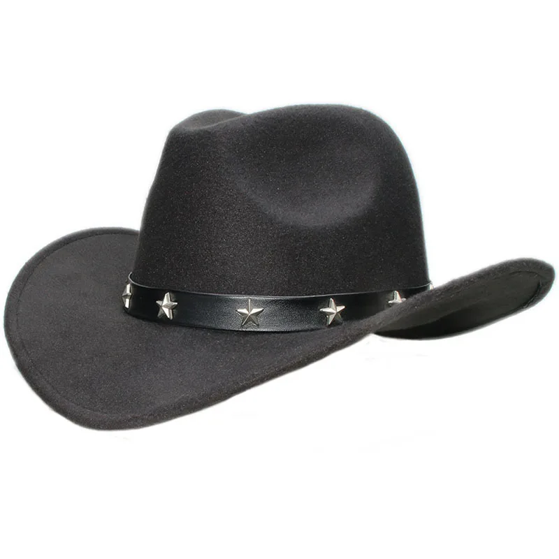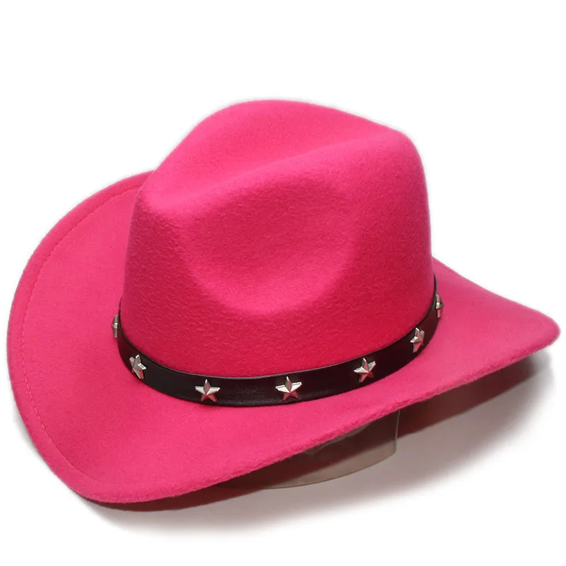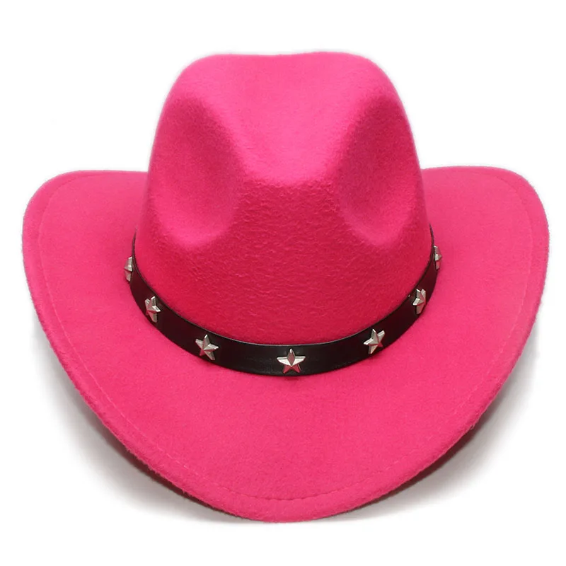 Ретро Кожаный ремешок со звездами для родителей и детей унисекс шерстяная с широкими полями Ковбойская шапка для взрослых и детей Кепка-котелок из коровьей кожи (61 см57 см54 см