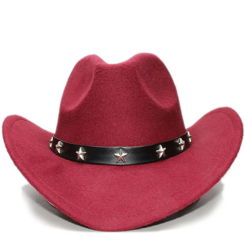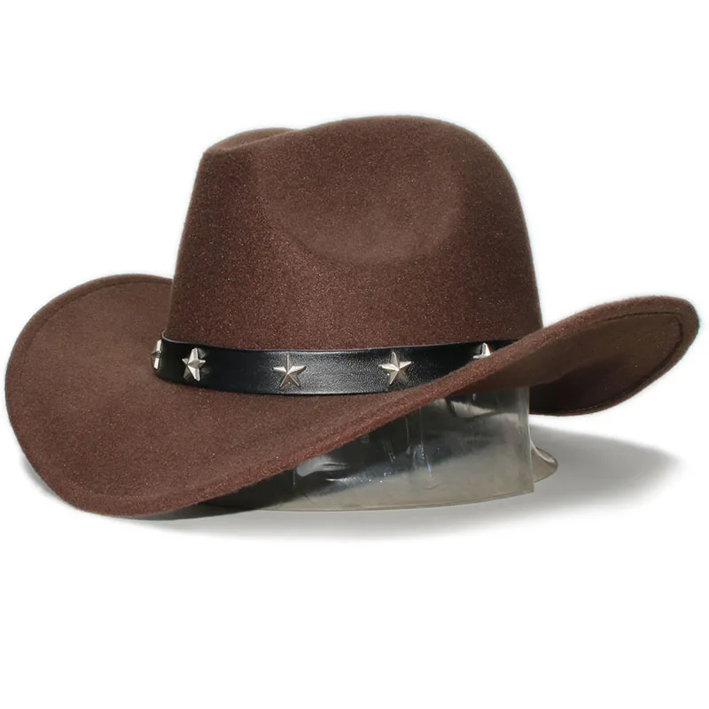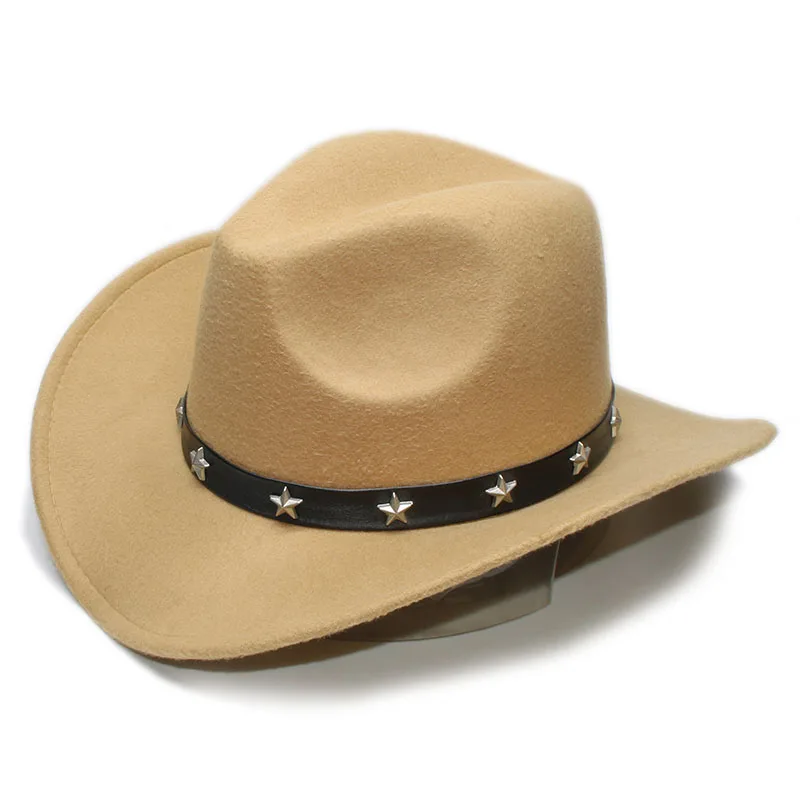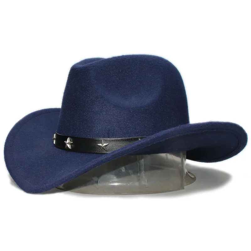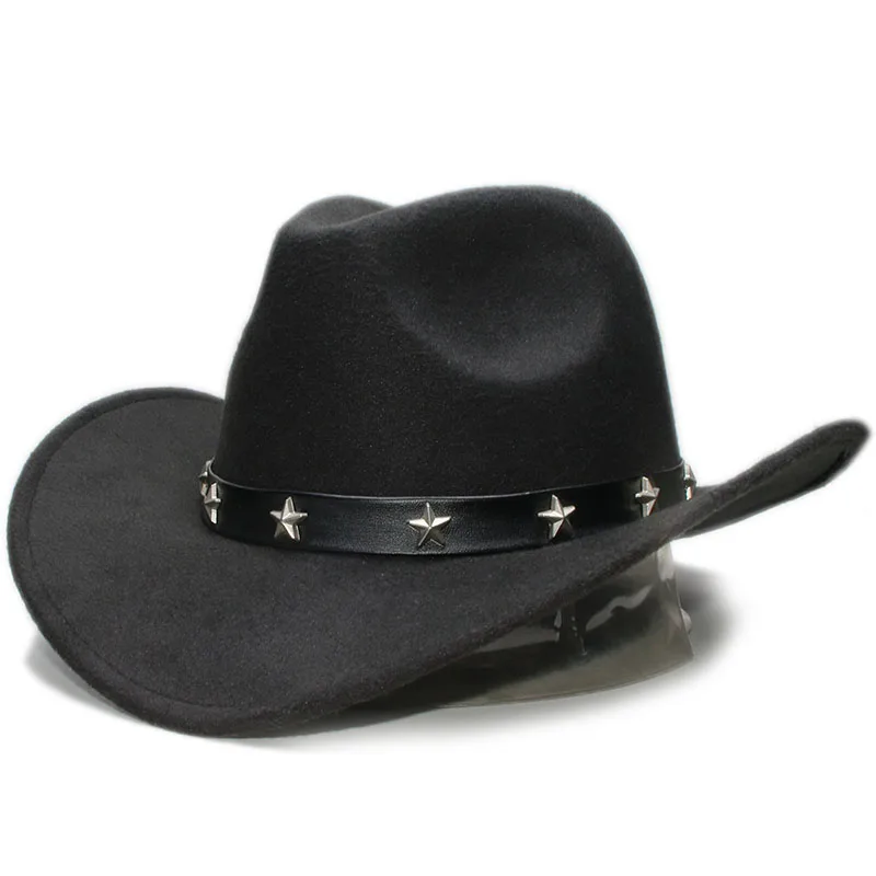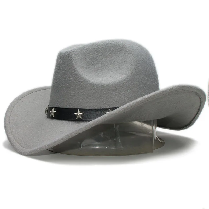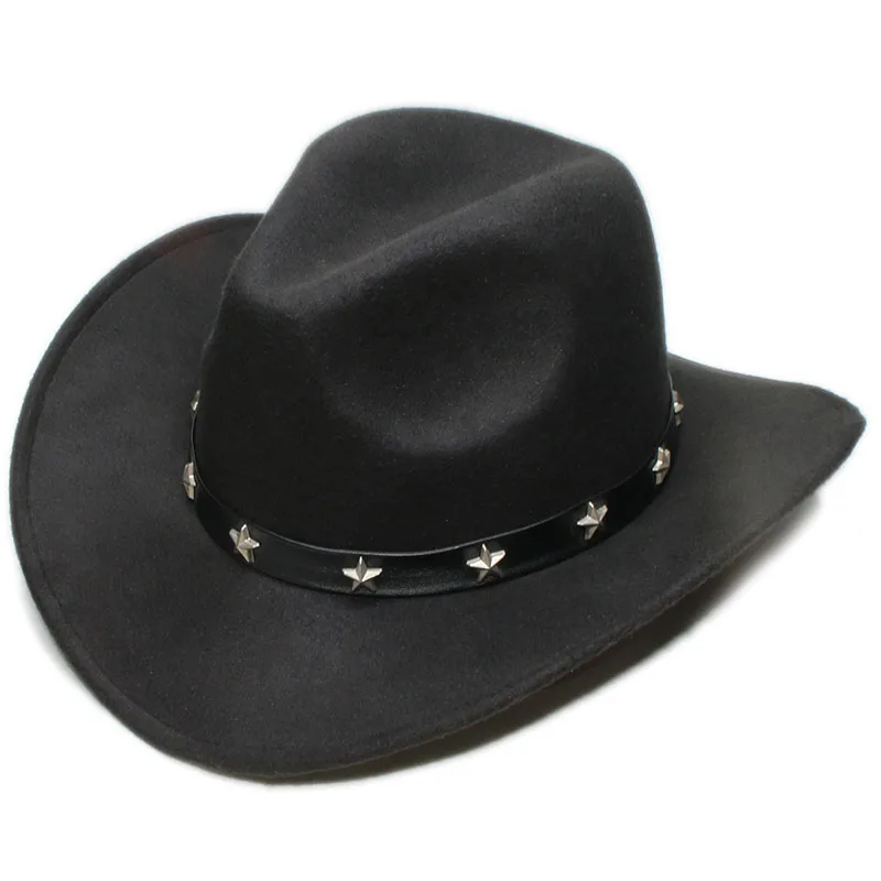Ретро Кожаный ремешок со звездами для родителей и детей унисекс шерстяная с широкими полями Ковбойская шапка для взрослых и детей Кепка-котелок из коровьей кожи (61 см57 см54 см