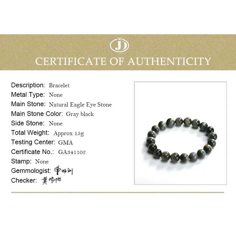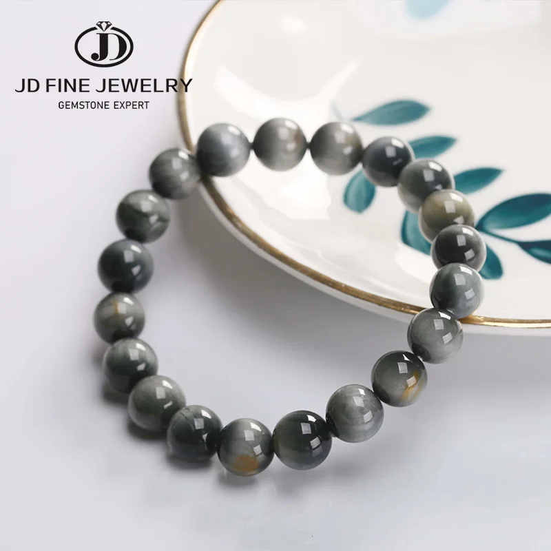 Браслет JD Elastic 5A Grey Eagle Eye очаровательные каменные бусины для мужчин и женщин, натуральный высококачественный драгоценный камень, ювелирные изделия