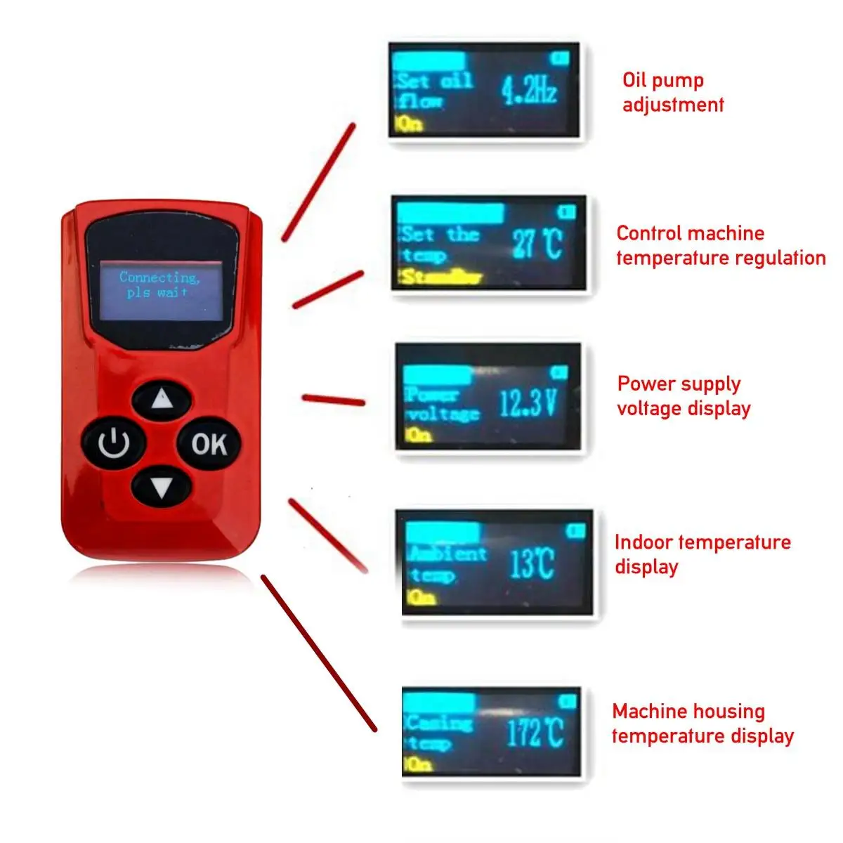 Характеристики:Модель: FJH-5/2Переключатель: ручка с цифровой индикациейМощность нагревателя: 2 кВт/8 кВтТопливный бензин: дизельНоминальное напряжение: 12 ВРасход топлива: 0,2-0,5Рабочая температура нагревателя:-40 ℃ ~ + 50 ℃Рабочая температура масляного насоса:-40 ℃ ~ + 40 ℃Рабочее напряжение: 10-12/20-32Вес изделия: 4230 гВес брутто: 8450 г (8 кВт) /6000 г (2 кВт)Размер изделия: 40*13*14 см (8 кВт) /28*11*11 см (2 кВт)Цвет: черный/красный + черный/серый + черныйЭффективное расстояние дистанционного управления: 100 метров
