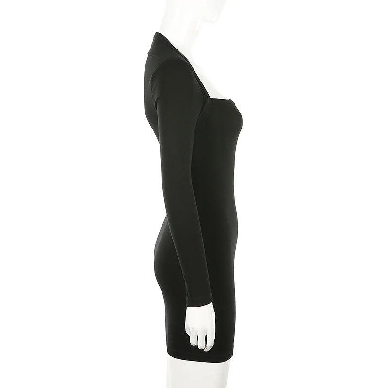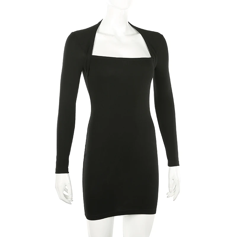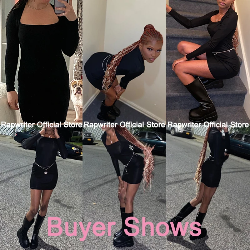 Женское винтажное короткое платье Rapwriter, черное облегающее платье с квадратным воротником и длинным рукавом, с высокой талией, для вечерние, 2020