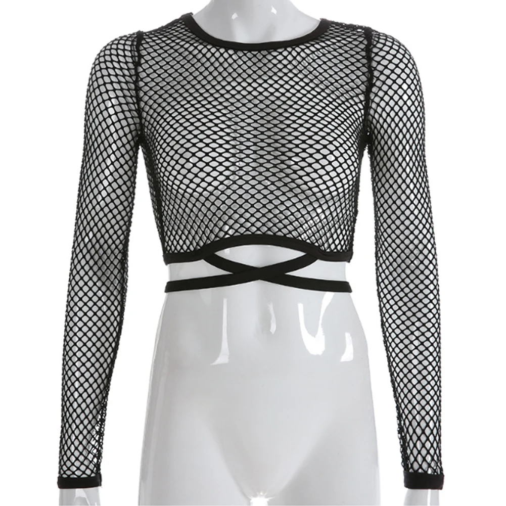 Женский сетчатый топ с длинным рукавом Goth, прозрачный сетчатый ко...