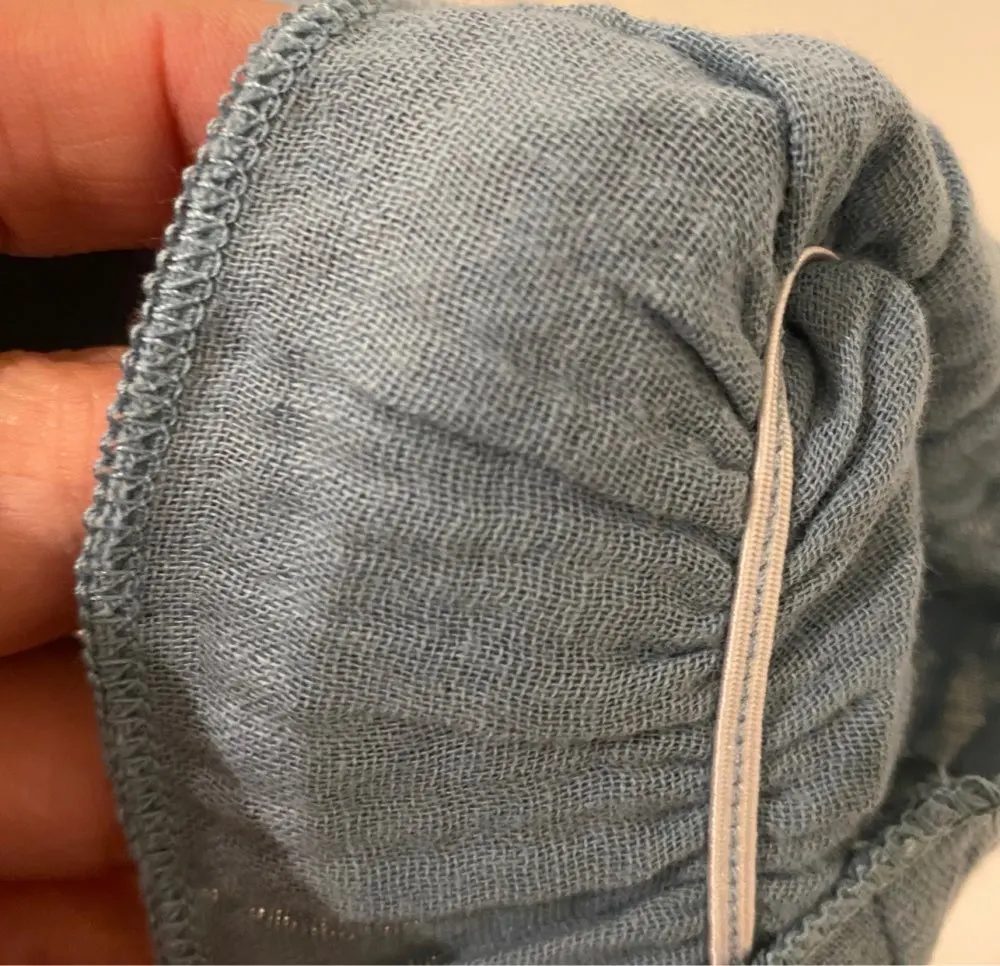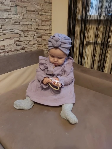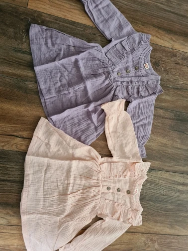 Доставили быстро, за две недели. Ткань легкая хлопковая муслин. Цвет и размер соответствуют описанию. Строчки ровные, нитки не торчат. Постороннего запаха нет. На 1, 9 взяли размер 100. Сидит свободно, на два года будет просто отлично. Однозначно рекомендую!!!