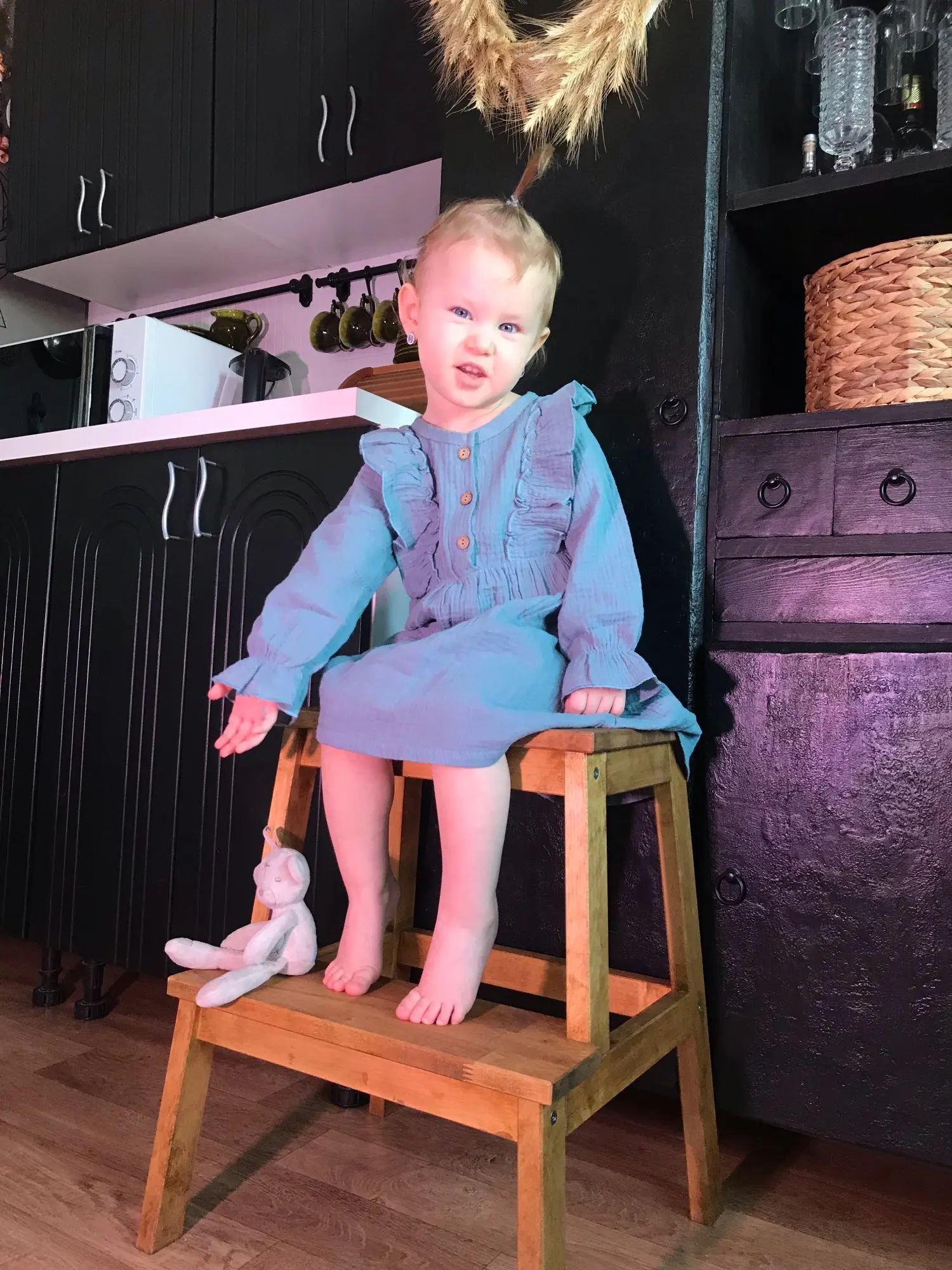 Очень красивое платье! Заказ пришёл за 2,5 недели. На девочку 1,11 лет, рост 92 см, вес 16,8 кг в талии тесное, очень жаль. Длина до колен. На стройную девочку будет хорошо. Платье сами замечательное