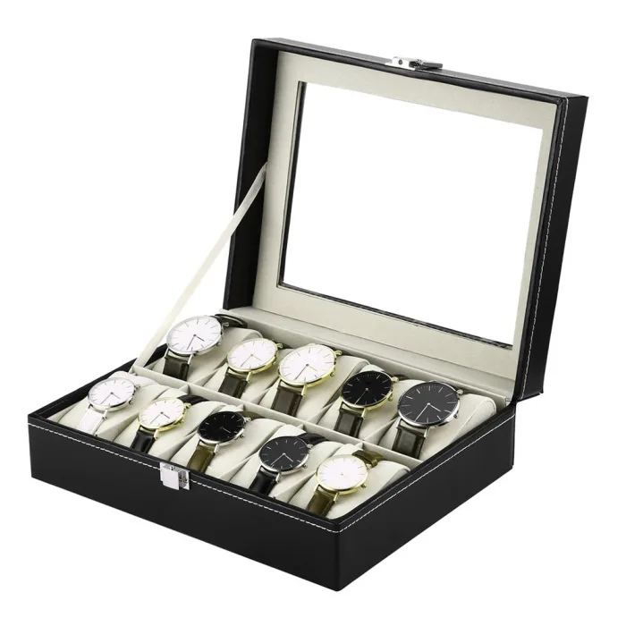 Шкатулка для наручных часов, прямоугольная, из искусственной кожи, 106 ячеек