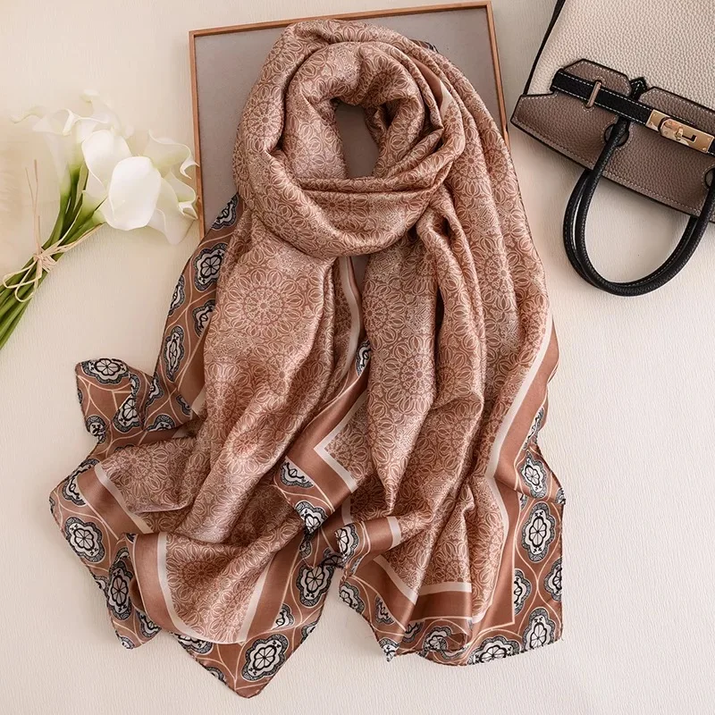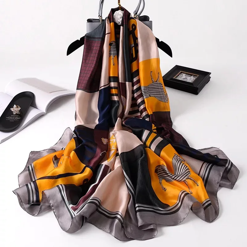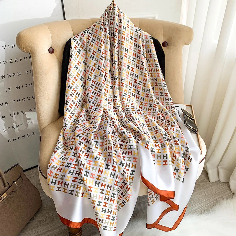 Роскошный брендовый женский пляжный шарф 2021, шелковые шарфы, Женская шаль с принтом, женская накидка на платок, женская накидка, бандана, глушитель 180x90 см