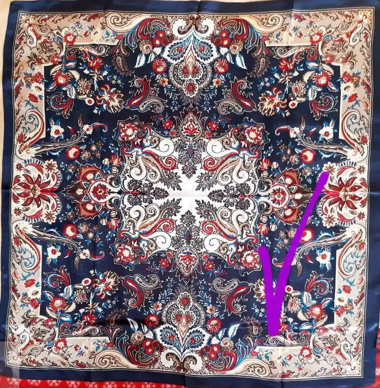 Цвет не совсем соответствует, на фото магазина, тёплые оттенки, красный так красный, а на самом деле бордовый и все цвета холодного оттенка, даже не поверила что тот-же платок, пока не сделала коллаж, остальное в норме, плотность средняя, размер соответствует