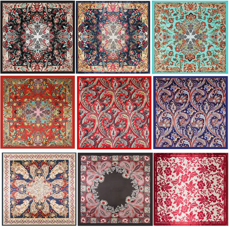 Шелковые шарфы, головной платок, оптом, шаль, накидки 90-90 см, квадратный хиджаб, шарф, женский, Asakusa, Цветочный, Пейсли, мягкий атласный