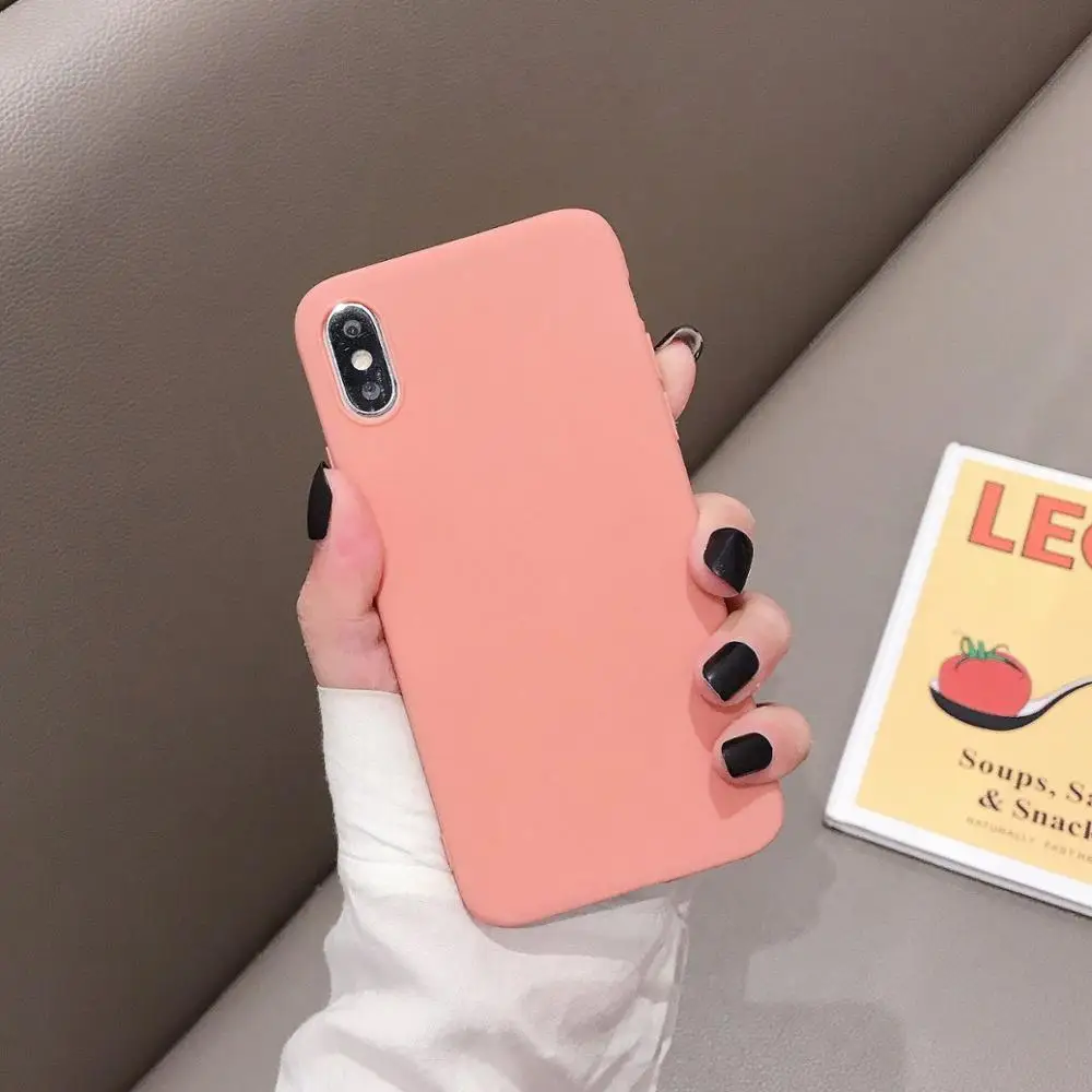 Чехол-накладка для iPhone 11 Pro, 7, 6, 6s, 8, X Plus, XR, XS Max, ТПУ, однотонный