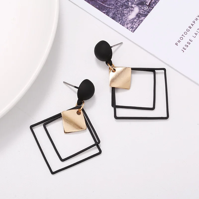 Женские акриловые серьги, черные асимметричные серьги, корейский ст...