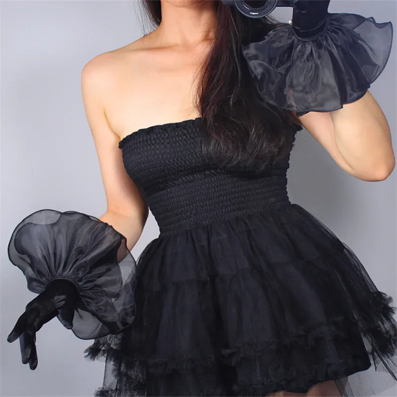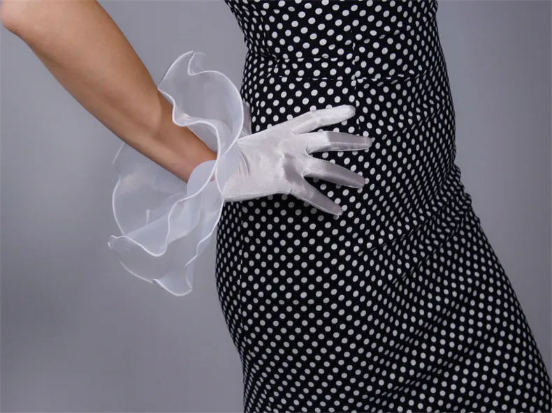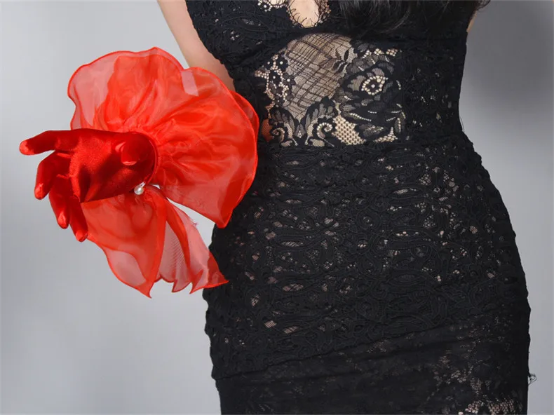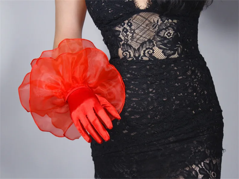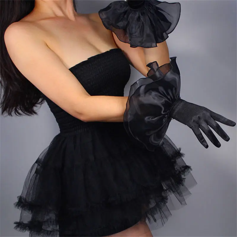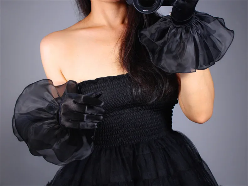 Шелковые кружевные перчатки, эластичные мерсеризованные шелковые Сатиновые черные ультра короткие большие двухслойные сетчатые женские перчатки из органзы с оборками WSG02