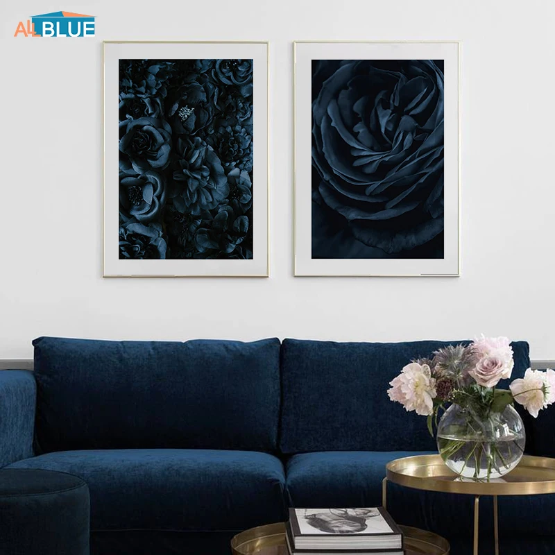 Современные Темно-синие розы, холст, плакаты, скандинавский свежий цветок, настенные художественные принты, живопись, декоративные картины, скандинавский Декор для дома