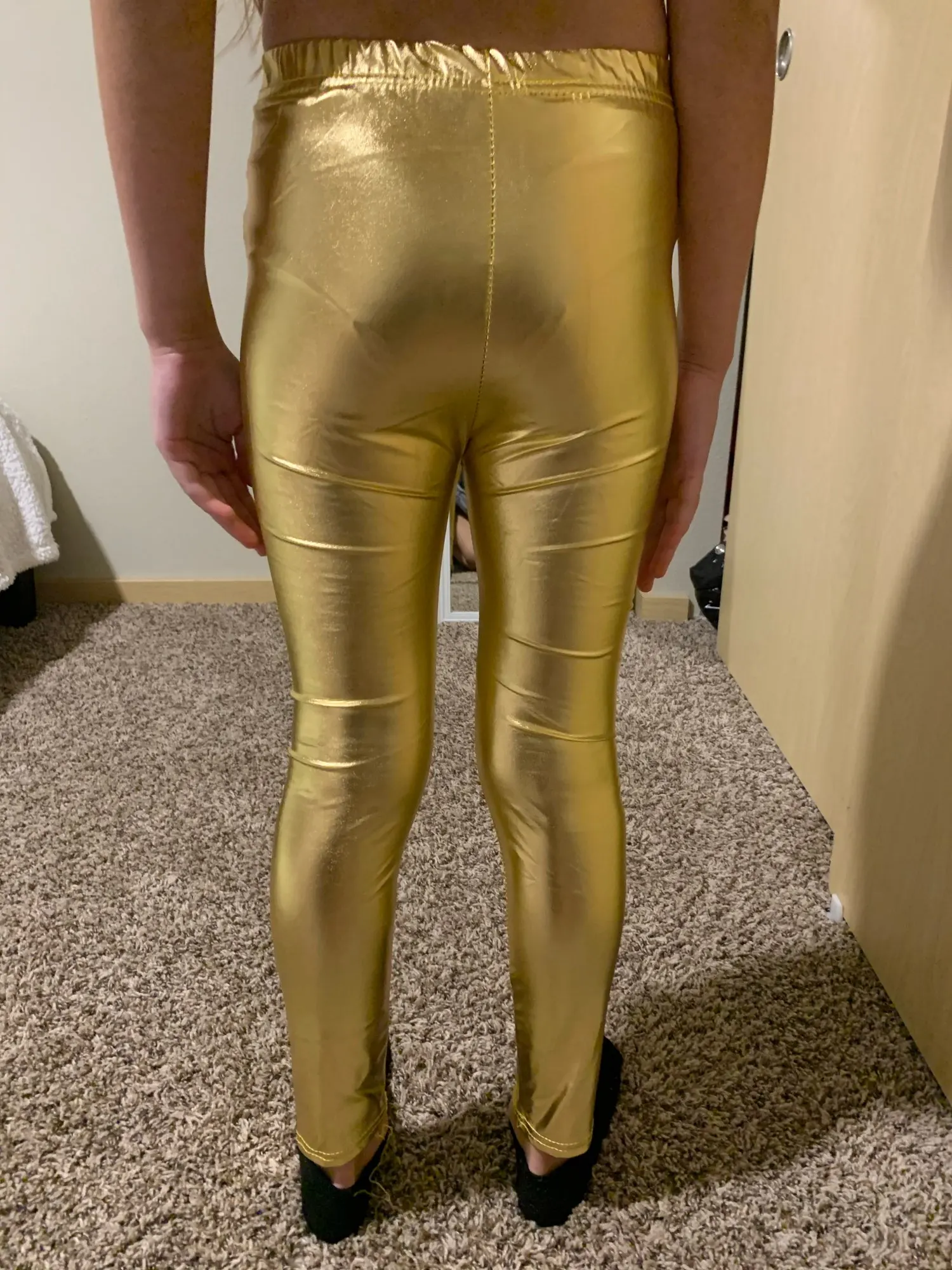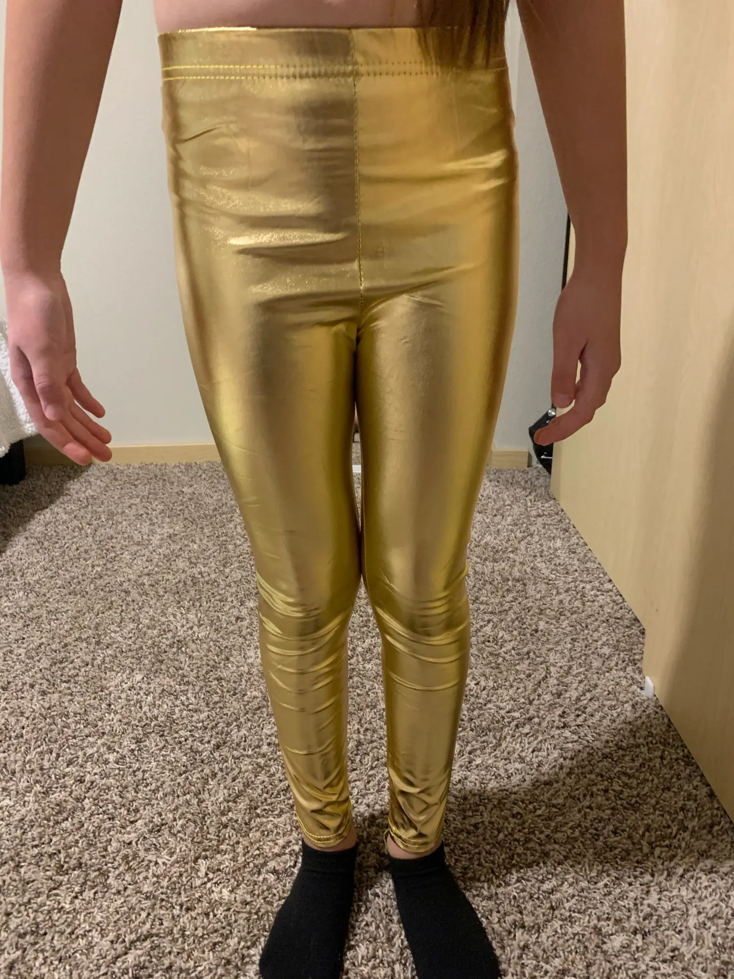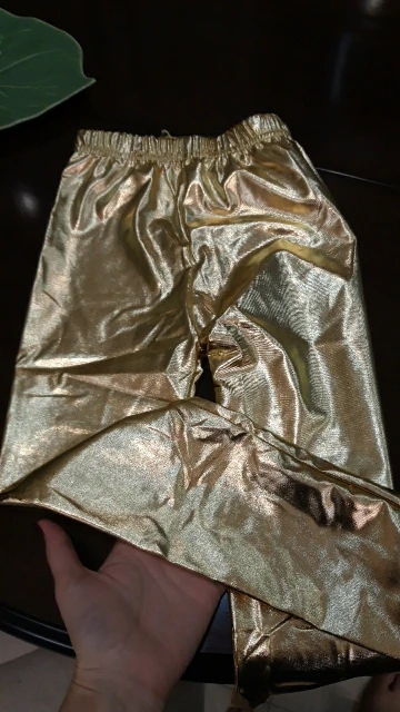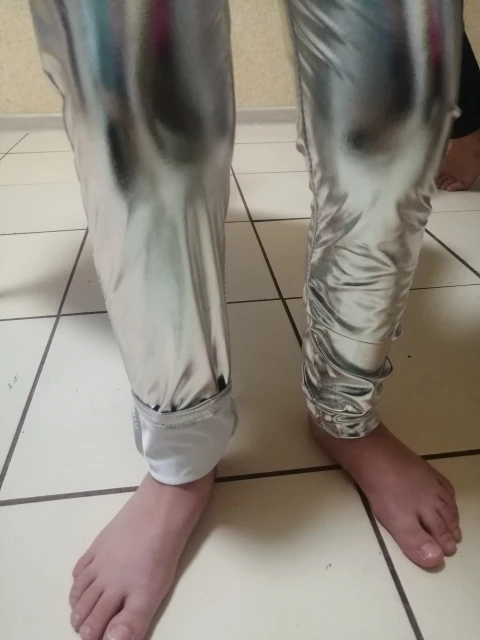 Блестят хорошо, но сильно маломерят. Нам 110 см на дочь которая 106 см не налезли, по длине нормальные но узкие.