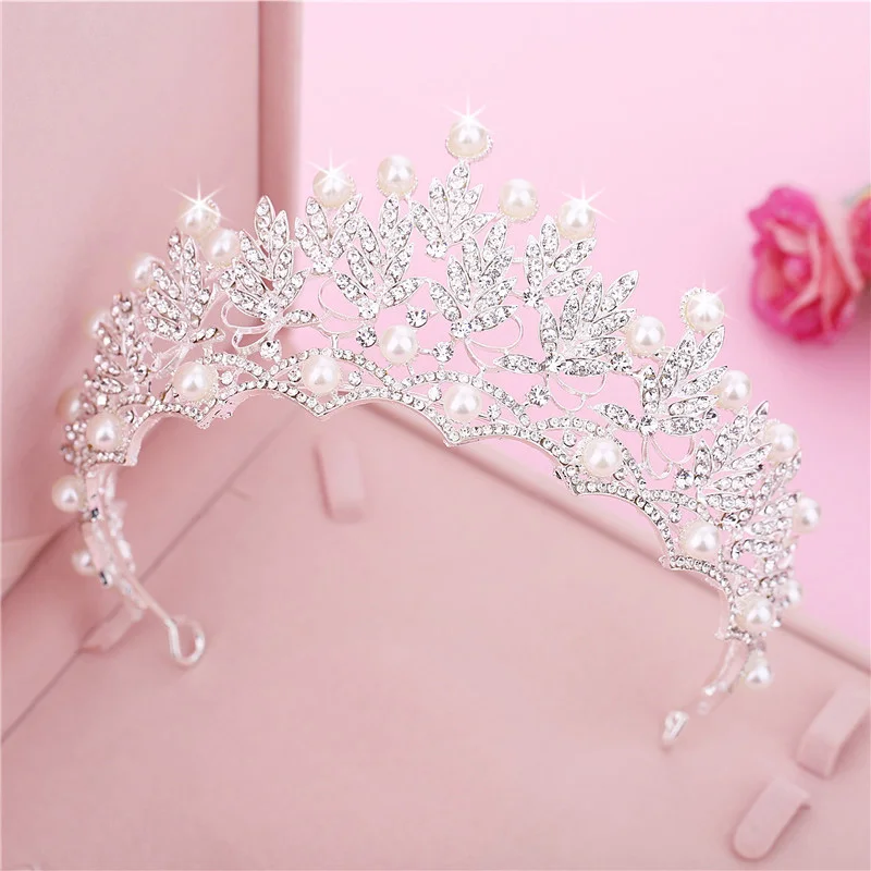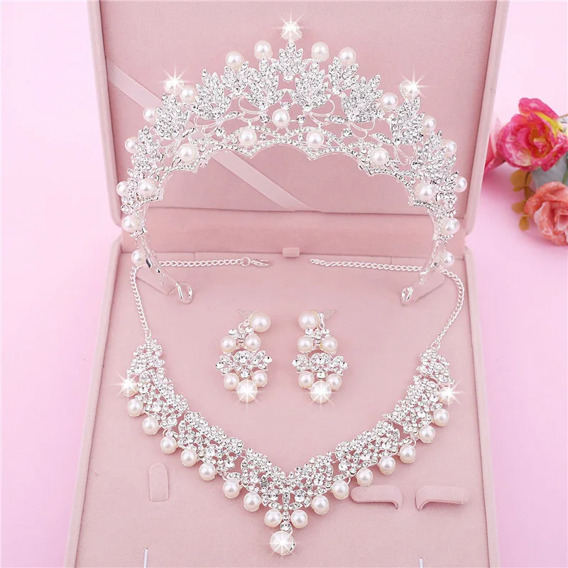 Свадебный набор из ожерелья и короны с жемчугом для невесты, стразы тиара, диадема, свадебные комплекты украшений, головной убор, Хрустальная корона, тиара