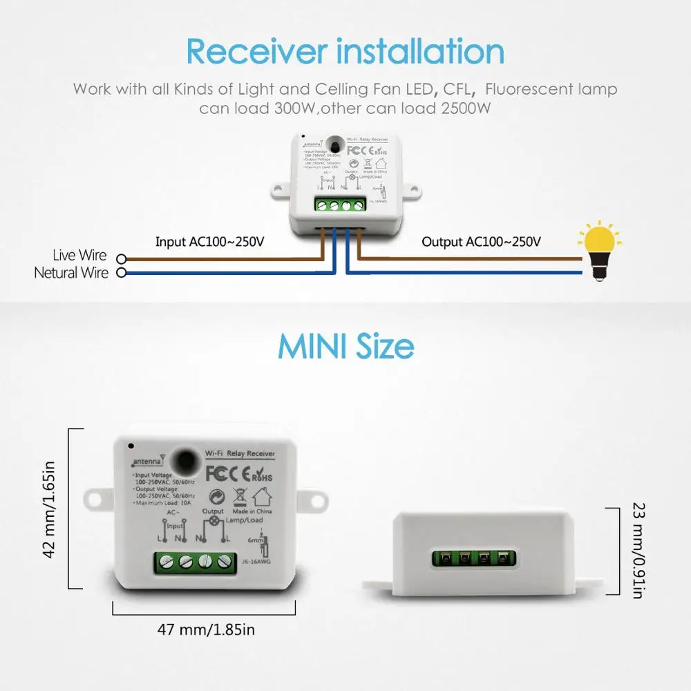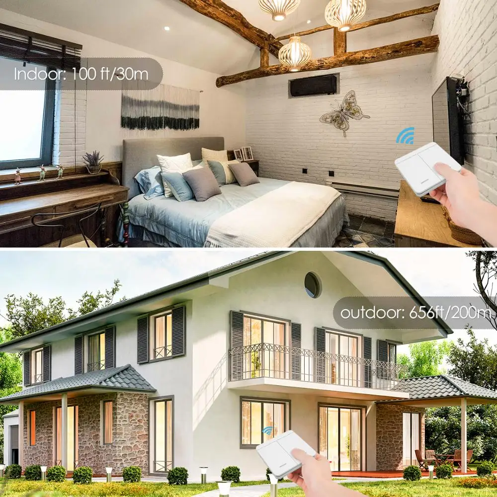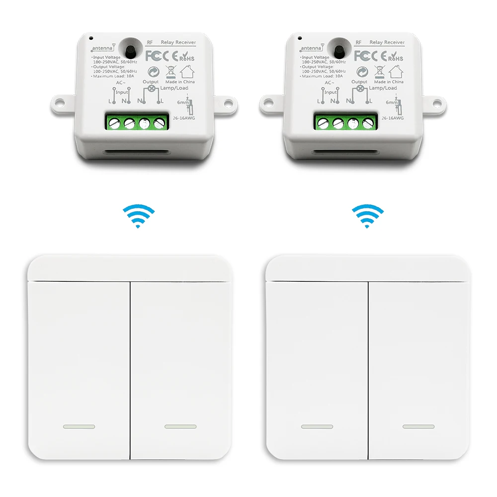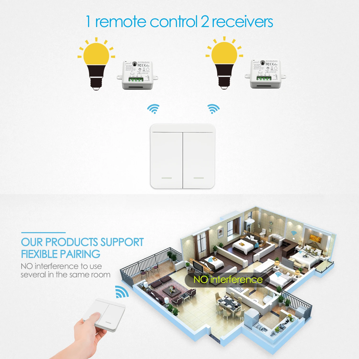 Беспроводной настенный выключатель света лампы дистанционного приемника передатчик Комплект освещения пульт дистанционного управления до 30 м, без провода, легко установить, без WiFi, не требуется концентратор